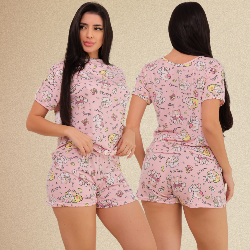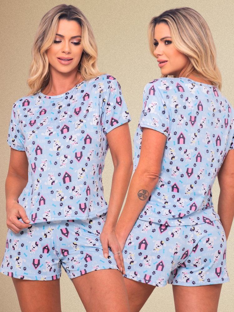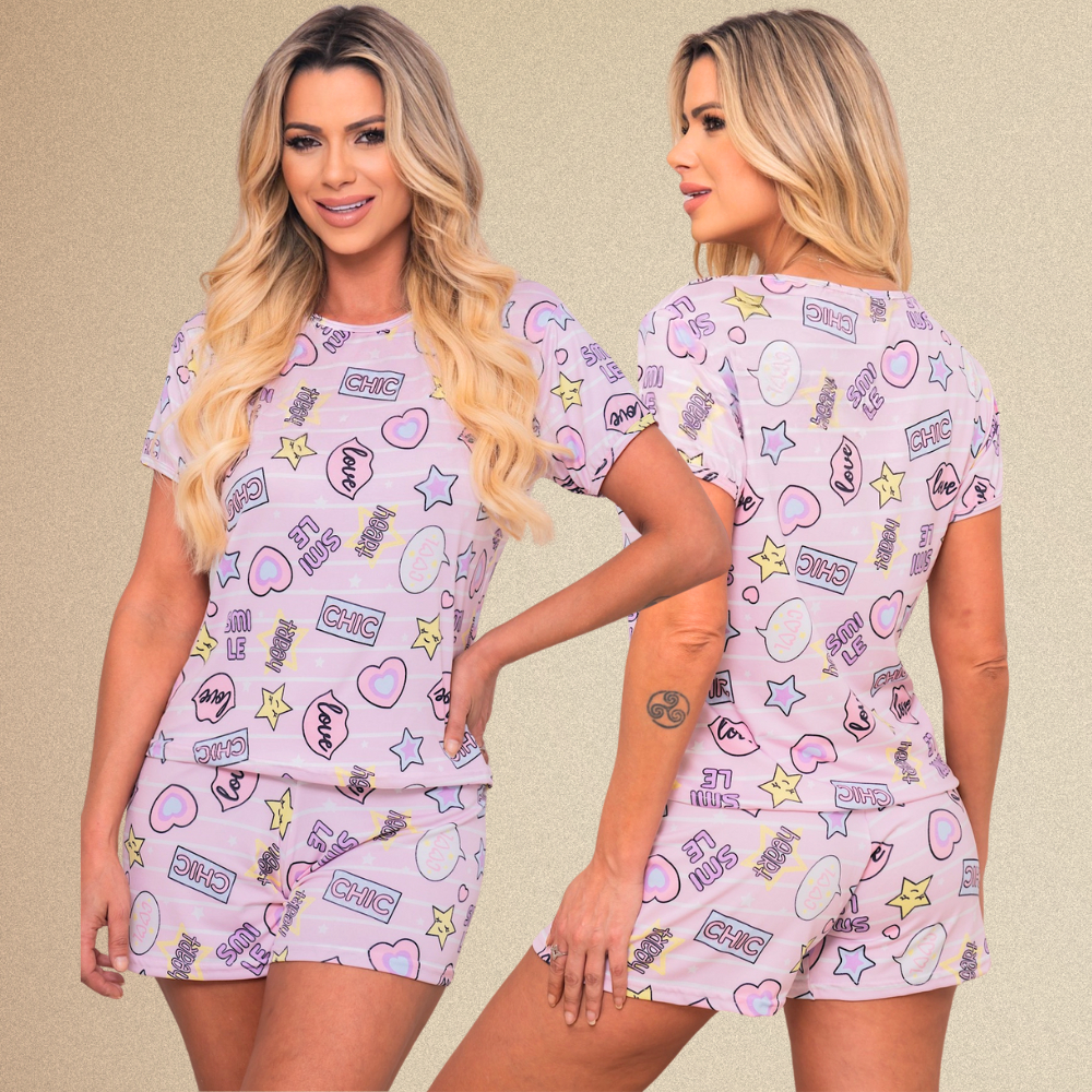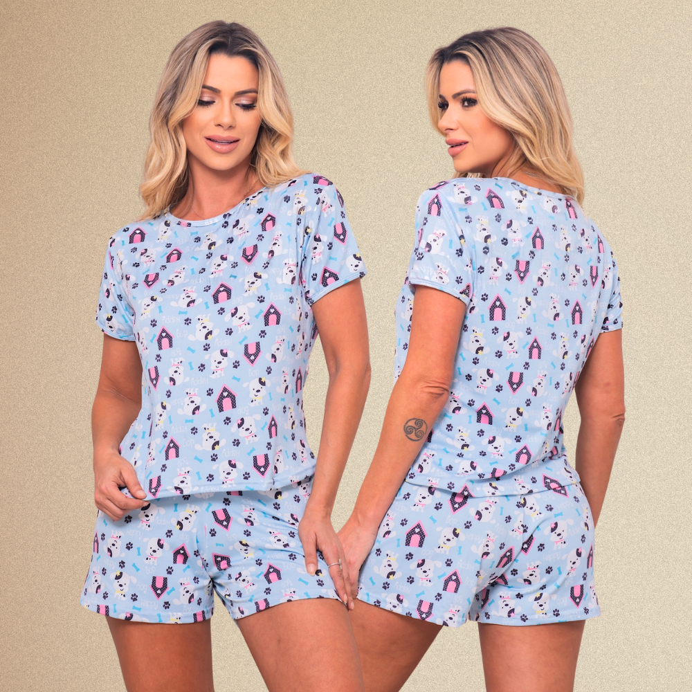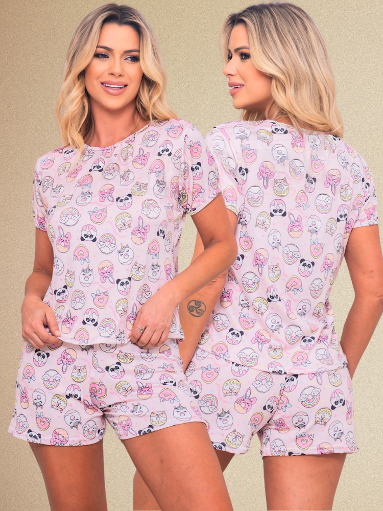 Baby Doll Suede Pijama Feminino Short Doll Estampado