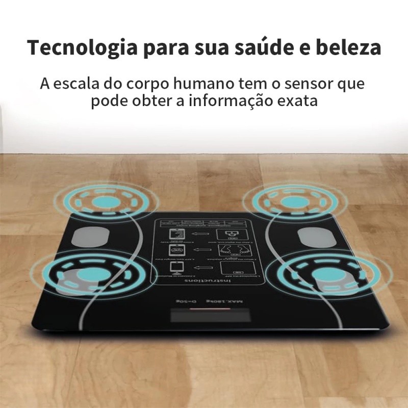 Balança Corporal Profissional Bluetooth Aplicativo LED Cobertura De Vidro Até 180kg