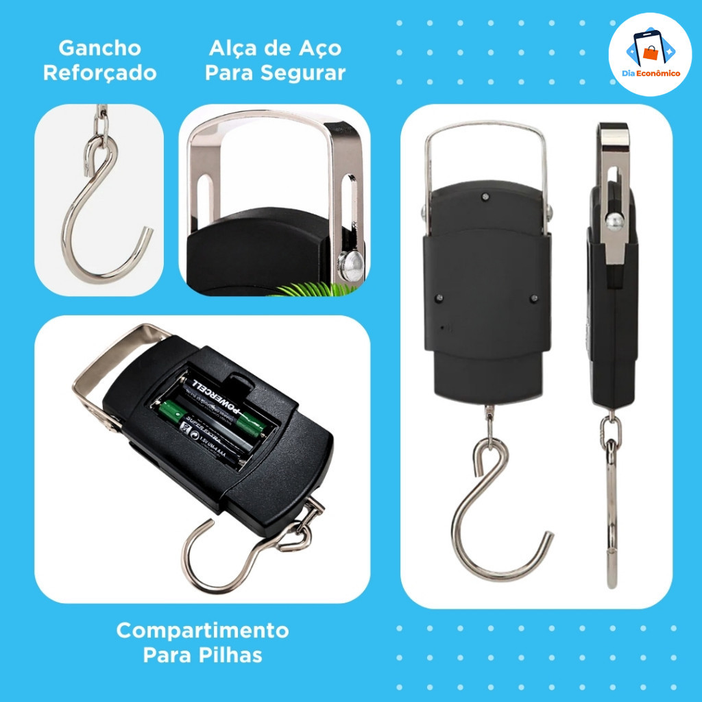 Balança Digital De Mão 50kg Portátil Precisão Bagagem Mala Grande Pesca Bolsa Viagem Camping