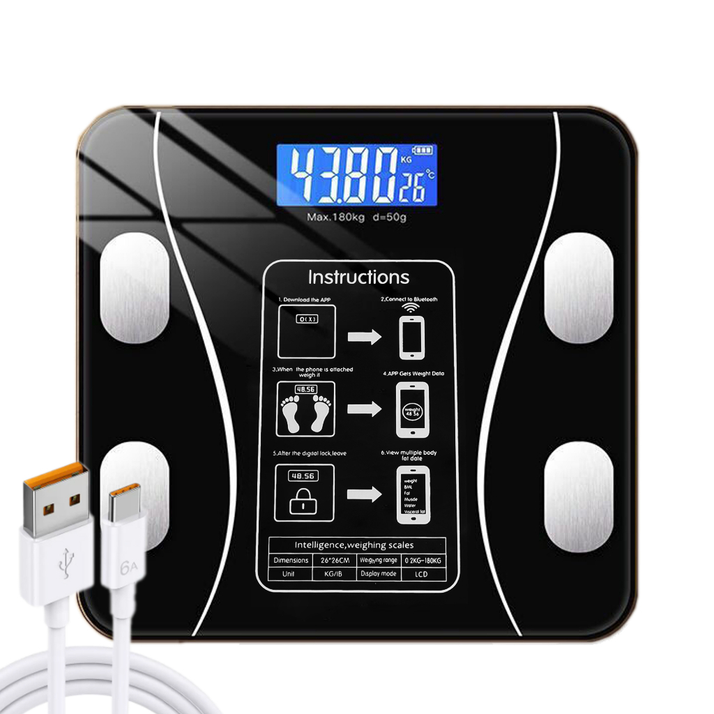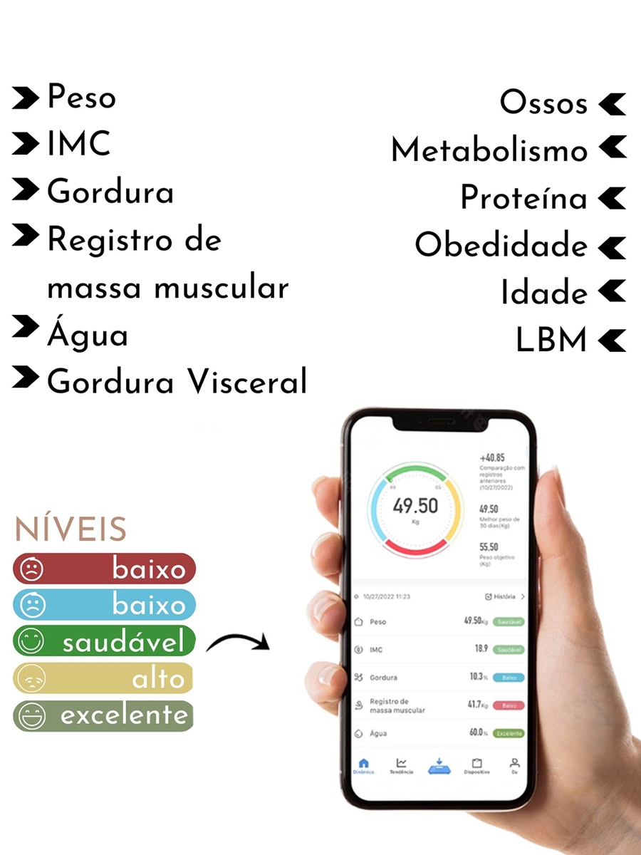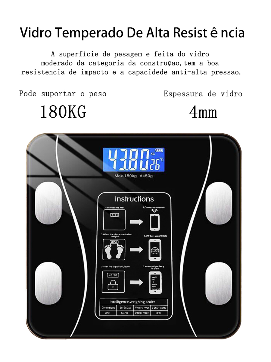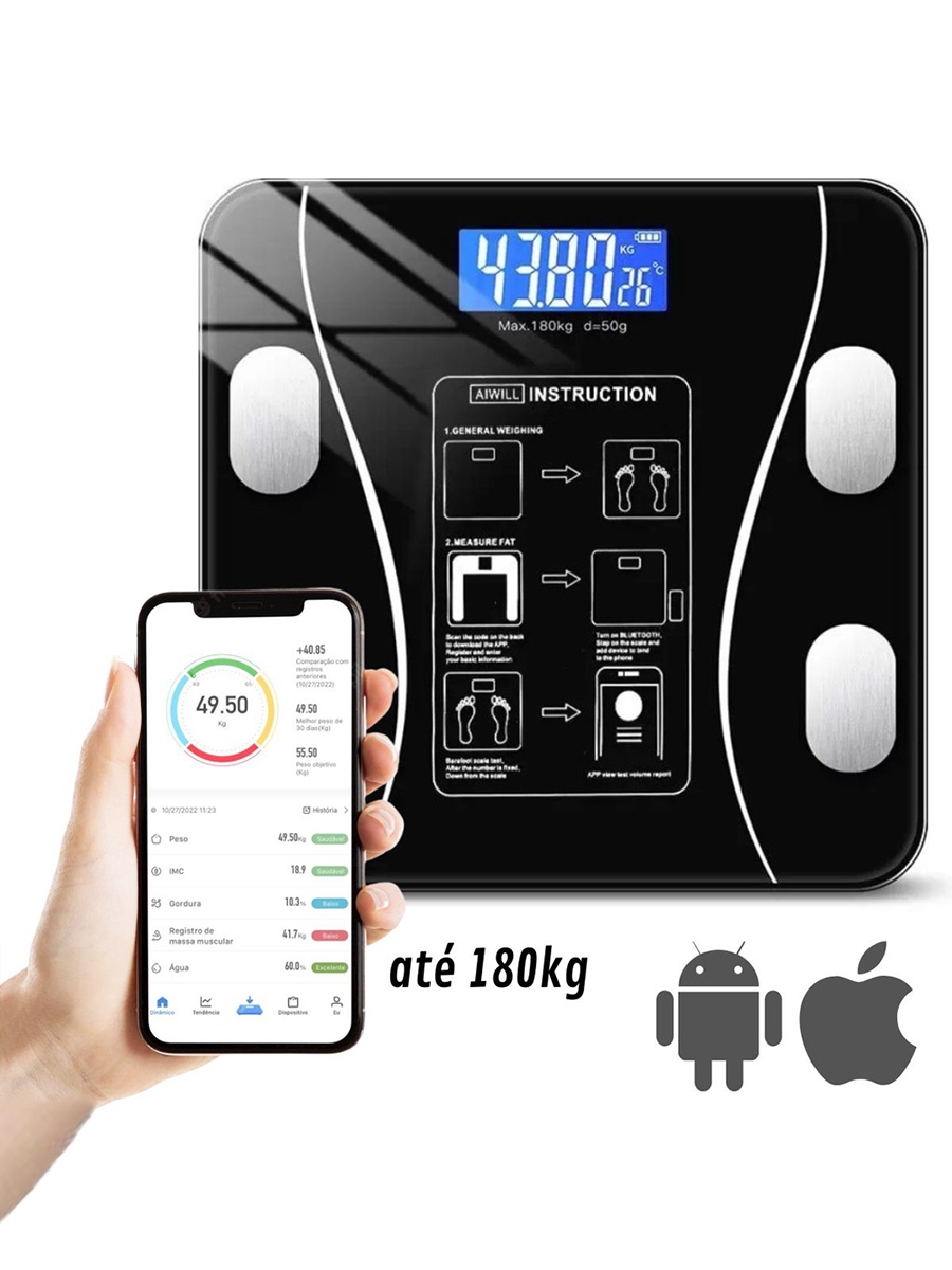 Balança Digital Medidora Corporal Bioimpedância Profissional Bluetooth 180Kg / Pilhas Preto cor Branco USB KD2123
