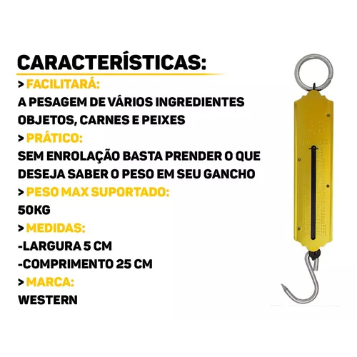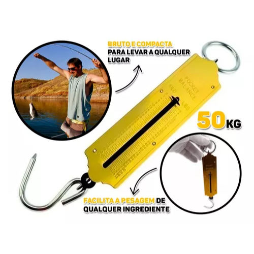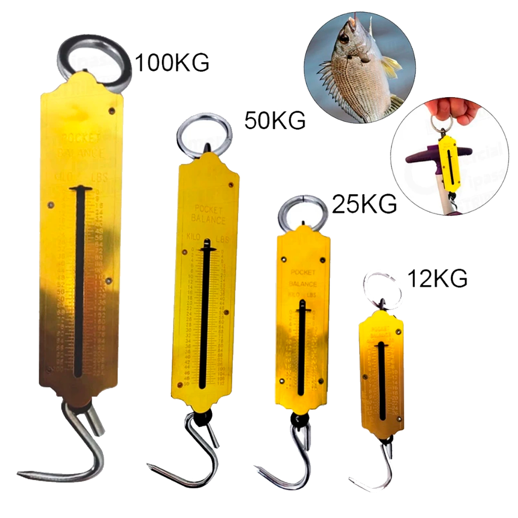 Balança Peixeira Metal 12 - 100Kg Manual Para Pesca Mala Com Gancho Fácil Resistente Peso Preciso