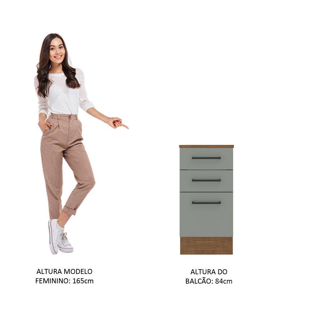 Balcão Armário de Cozinha 40 cm 3 Gavetas Rustic/Cinza Agata Madesa