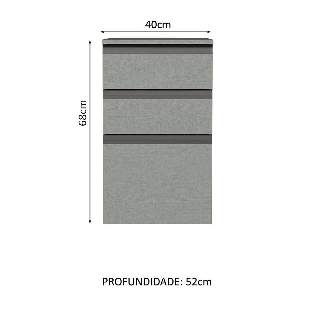 Balcão Armário de Cozinha 40 cm 3 Gavetas Suspenso Cinza Nice Madesa