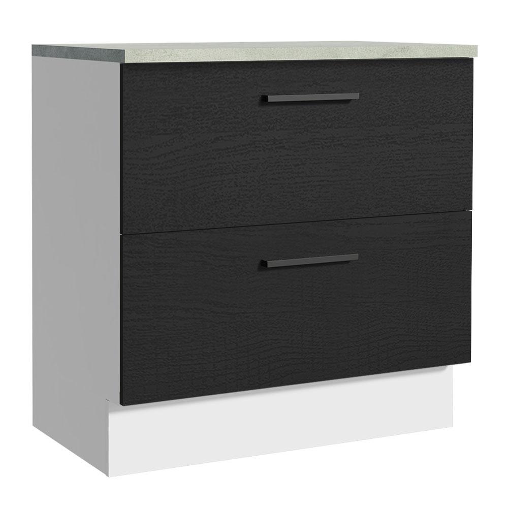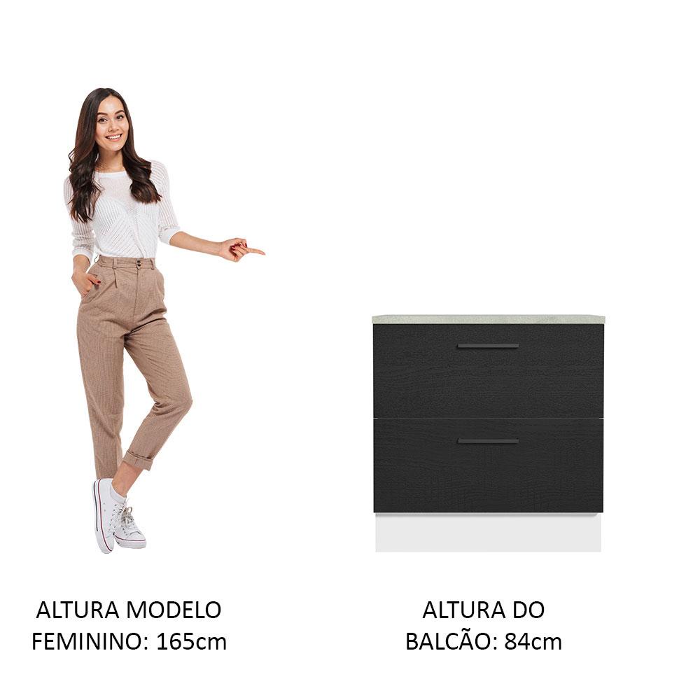 Balcão Armário de Cozinha 80 cm 2 Gavetas Branco/Preto Agata Madesa