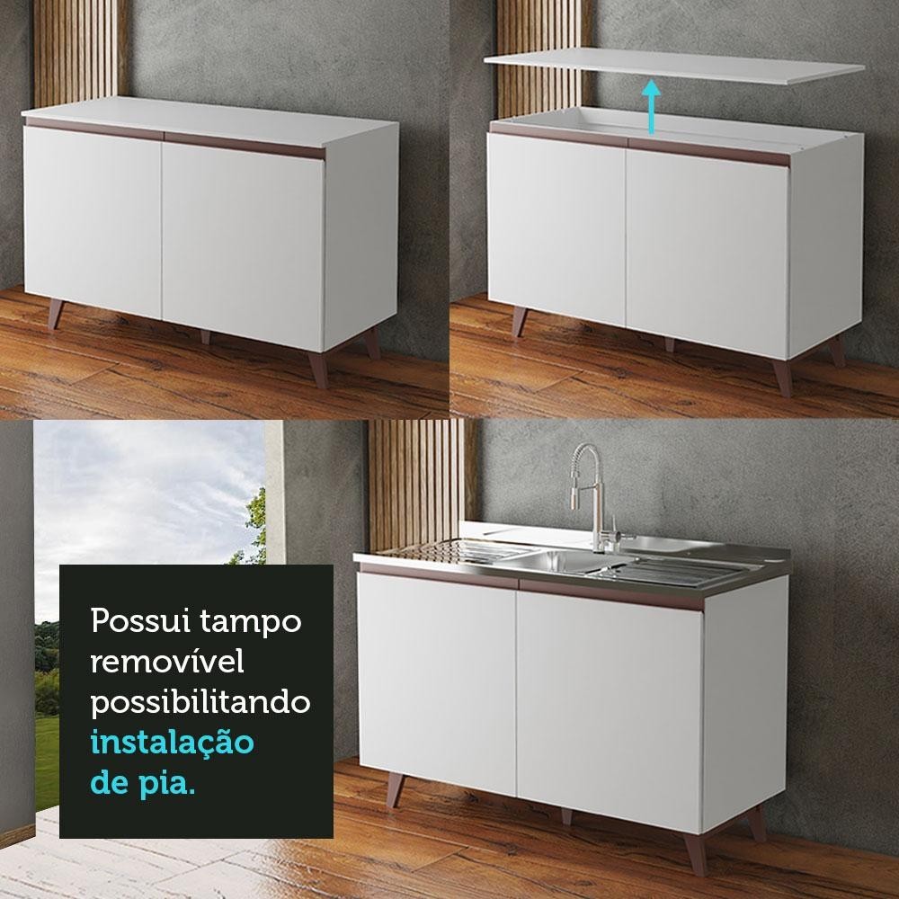 Balcão Armário de Cozinha de Pia 2 Portas Branco Reims Madesa