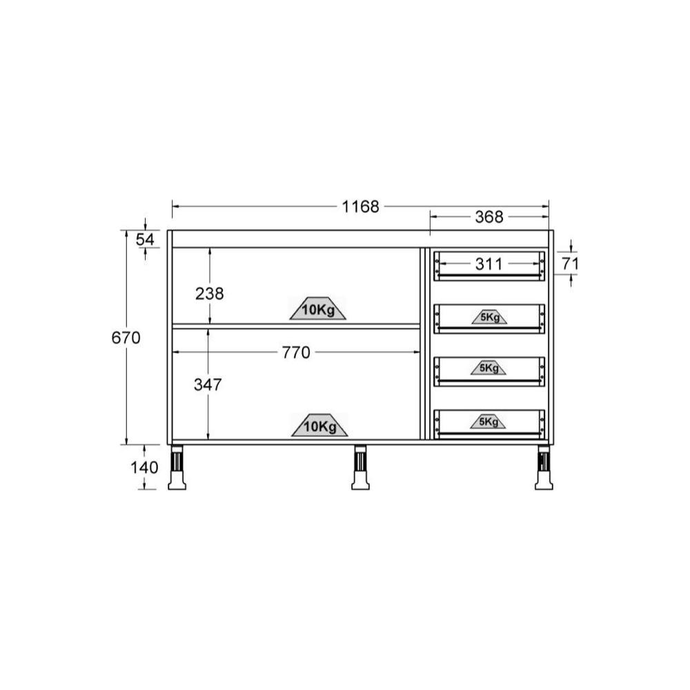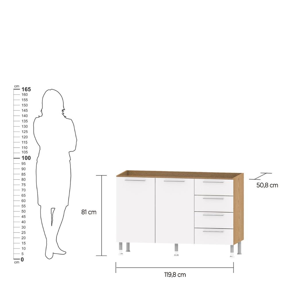Balcão Cozinha Ditália Aspen 2pt4gv CV/BR Tampo Preto CD-104