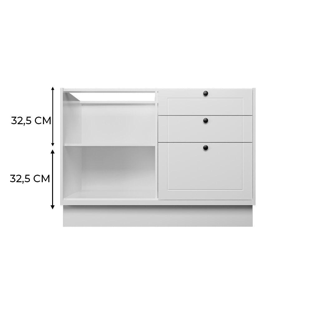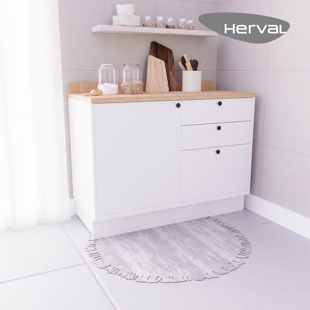 Balcão Cozinha MDF Herval Viana, 1 Porta e 3 gavetas, Branco Ártico, com divisor de talheres, 120 cm