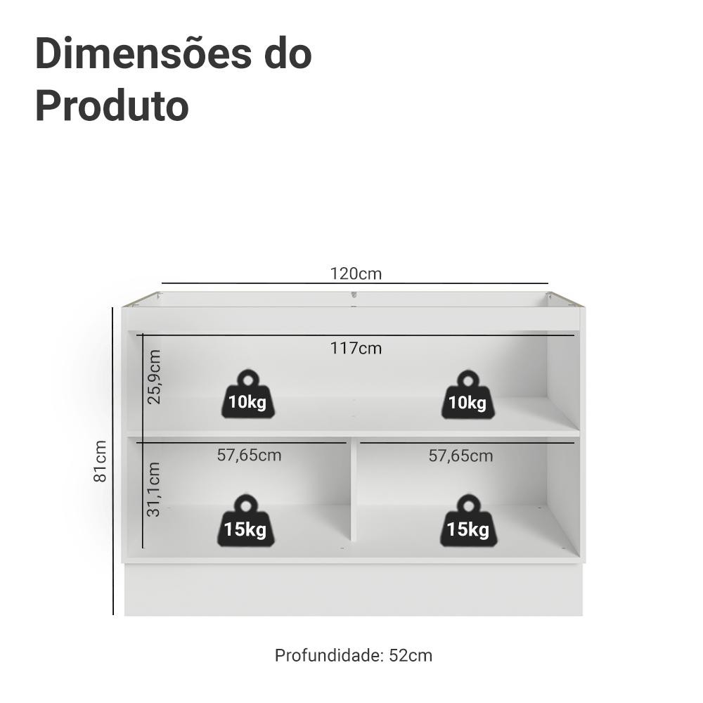 Balcão Gabinete de Pia 120 cm (Sem Tampo) Branco/Azul Vik Madesa