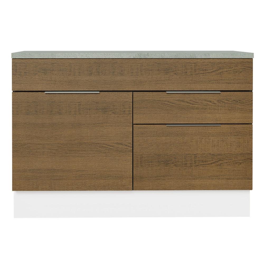 Balcão Gabinete de Pia 120 cm 1 Portas e 2 Gavetas (Com Tampo) Branco/Rustic Stella Madesa
