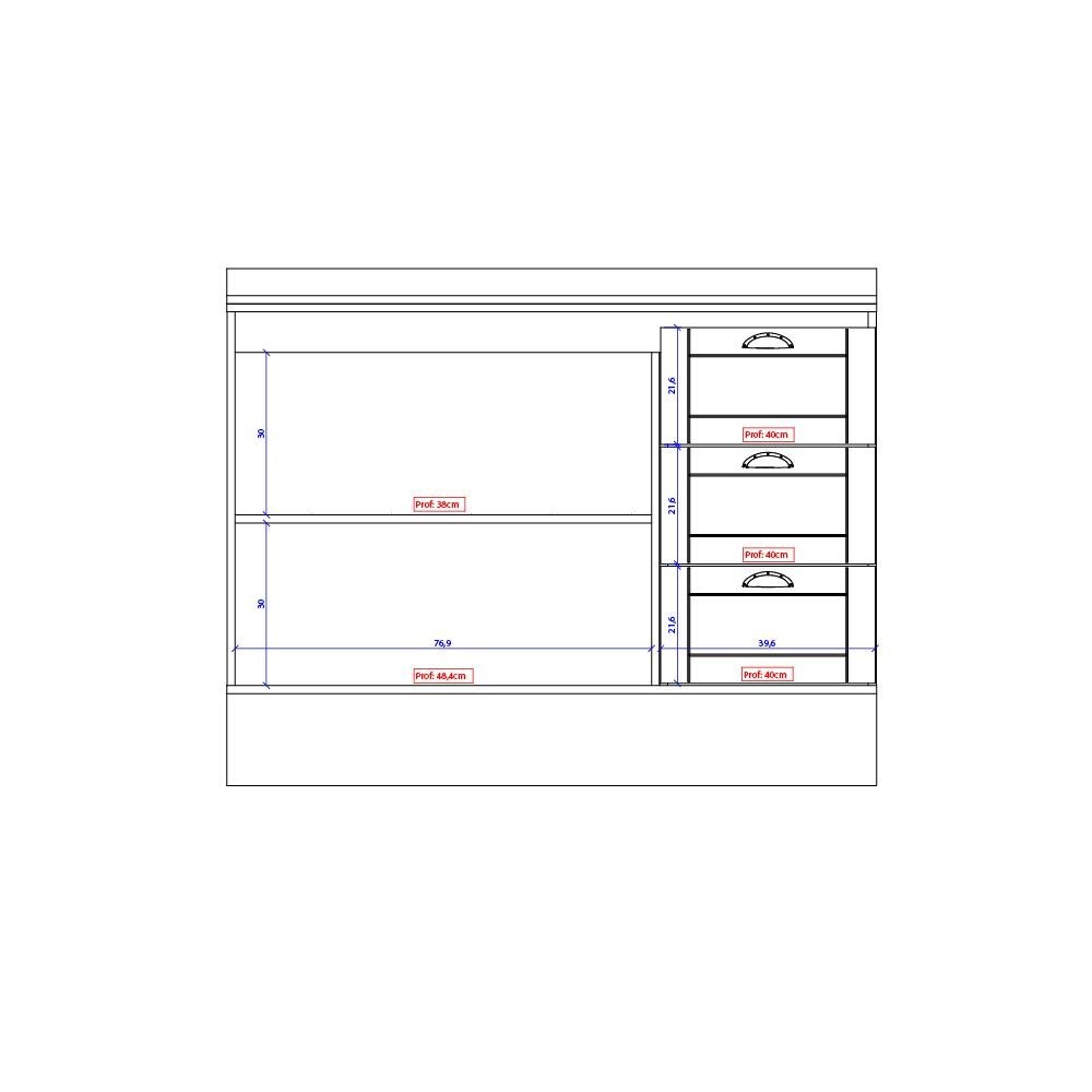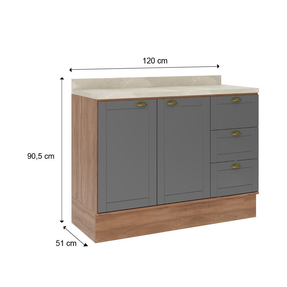 Balcão Milla 2 Portas 3 Gavetas Nog/Cinza 120cm Carraro