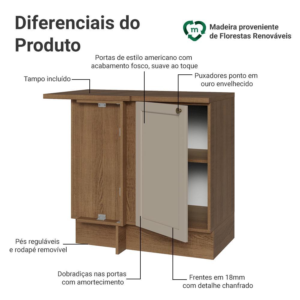 Balcão de Canto 1 Porta Rustic/Crema Vik Madesa