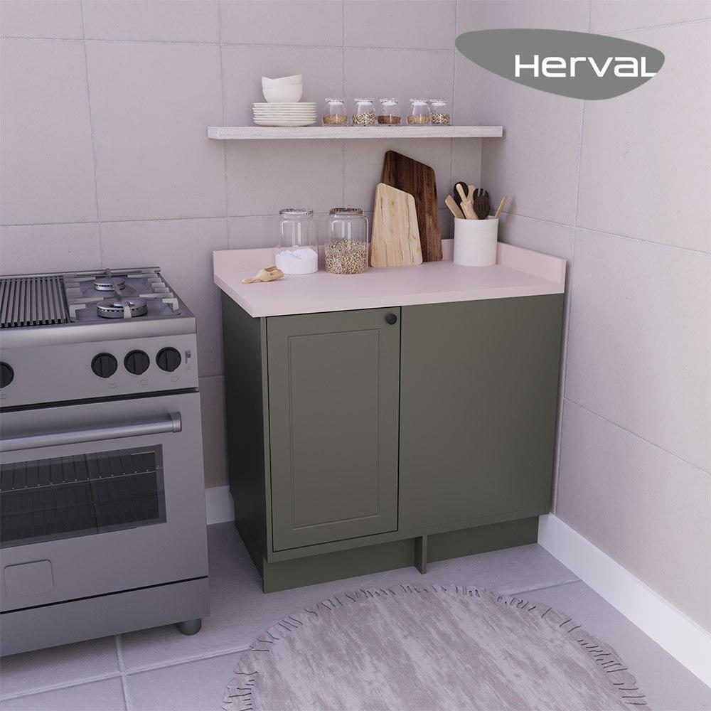 Balcão de Canto Cozinha MDF Herval Viana, 1 Porta, Verde Hill