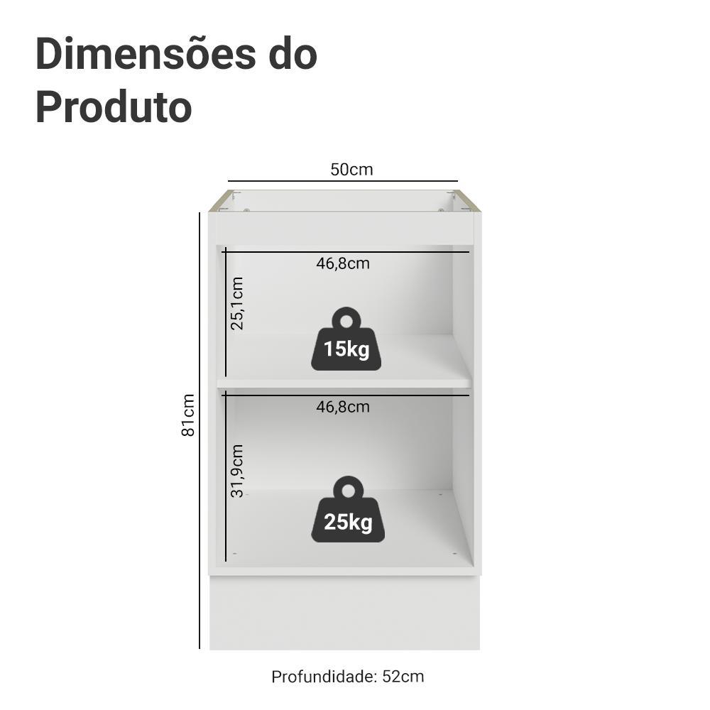 Balcão de Cozinha 50cm 1 Porta (Sem Tampo) Branco/Cinza Agata Madesa