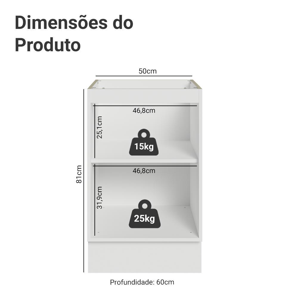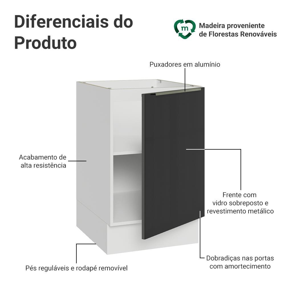 Balcão de Cozinha 50cm 1 Porta (Sem Tampo) Branco/Preto Lux Madesa