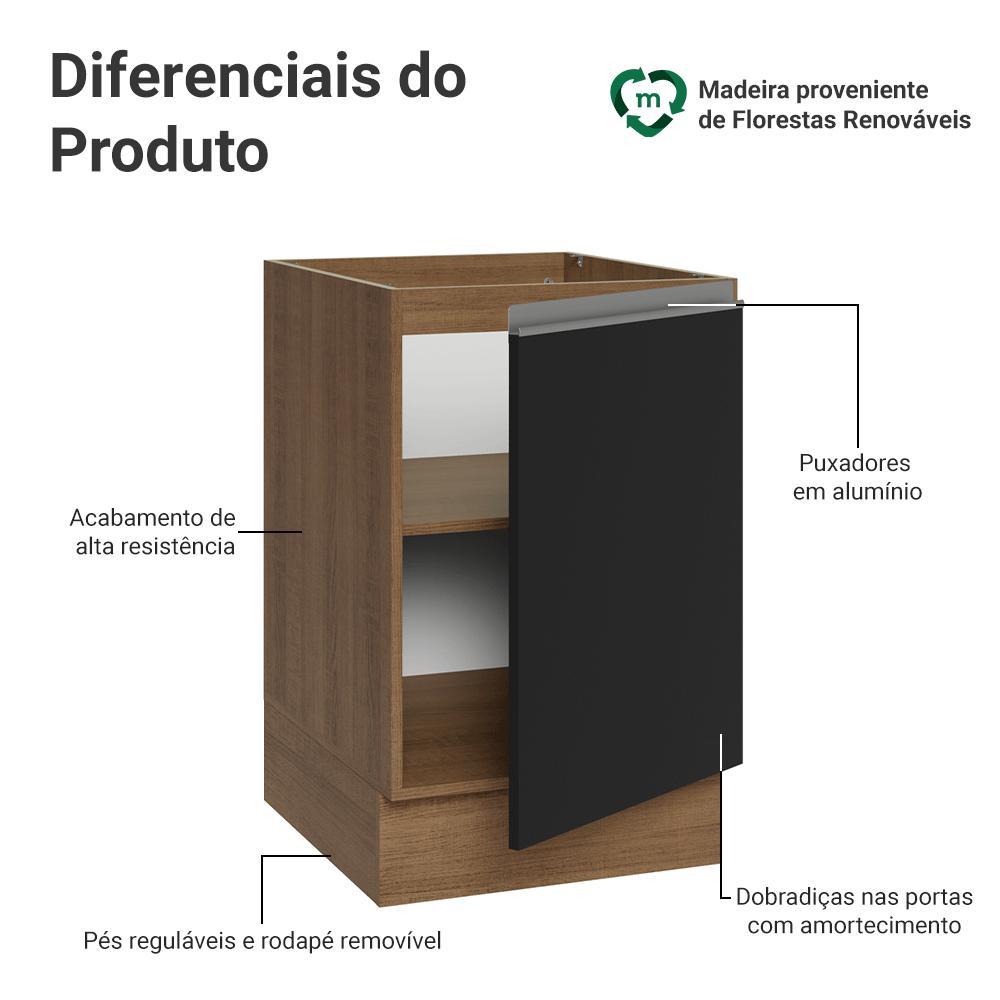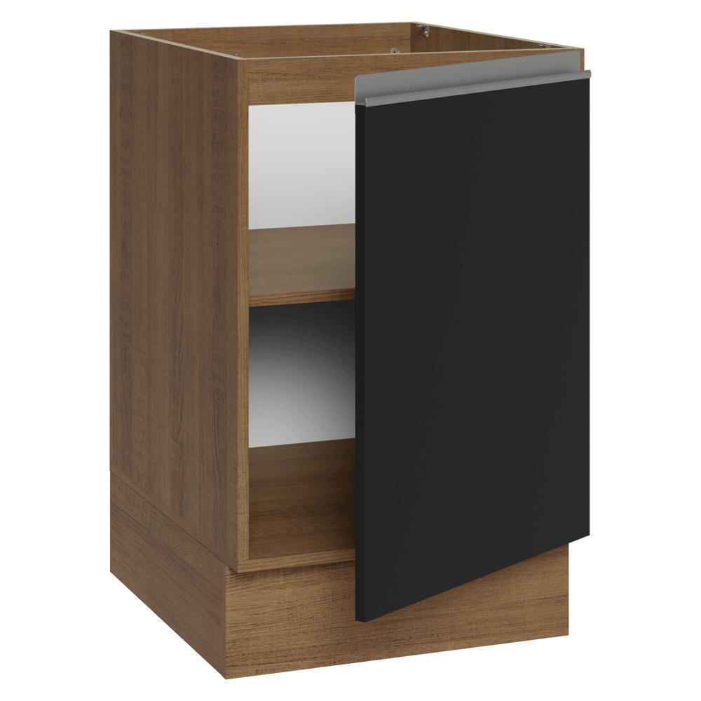 Balcão de Cozinha 50cm 1 Porta (Sem Tampo) Rustic/Preto Glamy Madesa