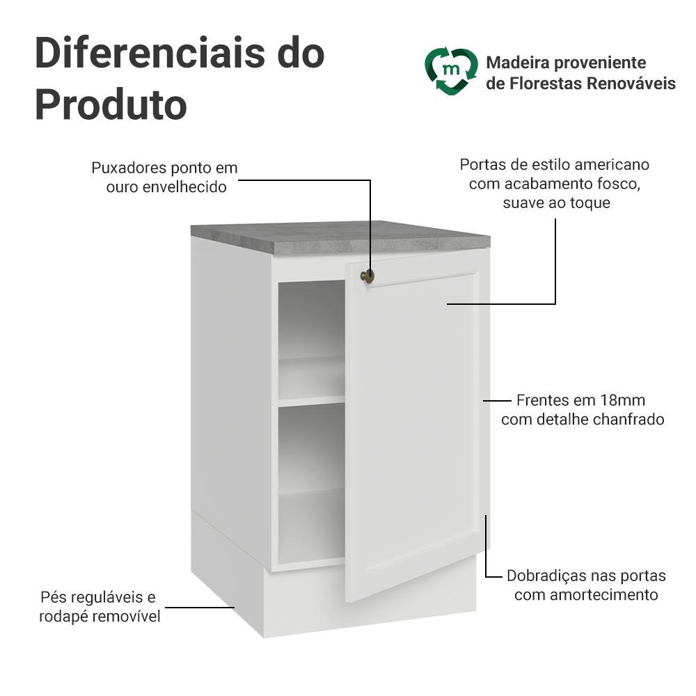 Balcão de Cozinha 50cm 1 Porta Branco Vik Madesa