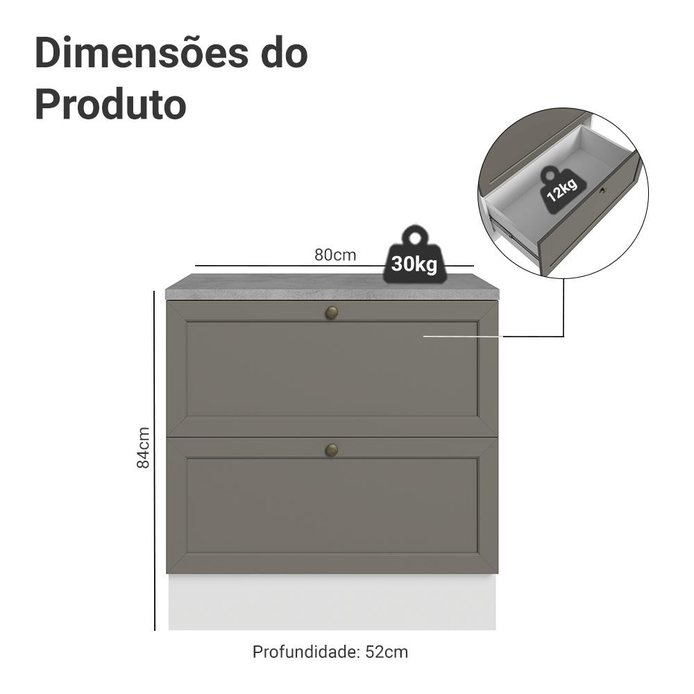Balcão de Cozinha 80 cm 2 Gavetas Branco/Cinza Vik Madesa