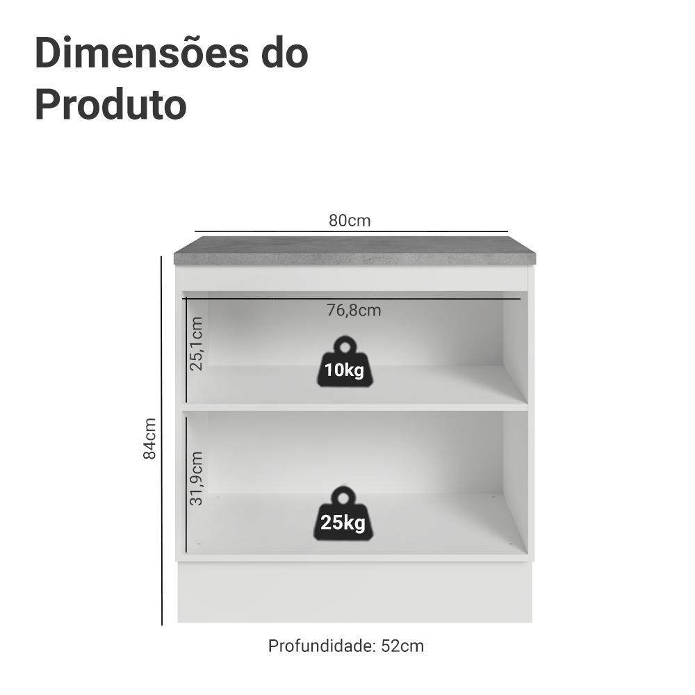 Balcão de Cozinha 80 cm 2 Portas Branco/Azul Vik Madesa