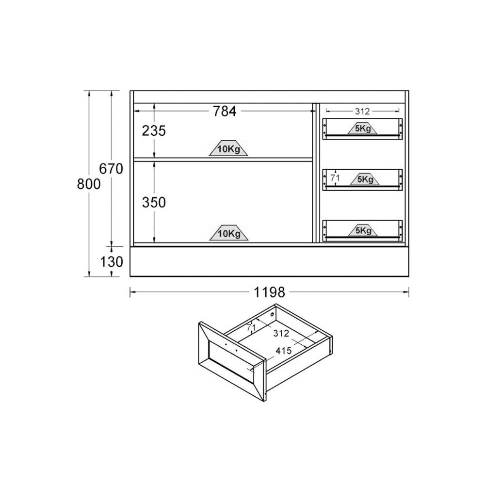 Balcão de Cozinha Ditália Denver Riviera com Branco CD-1014