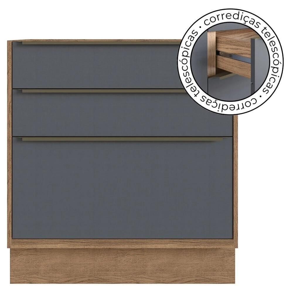 Balcão de Cozinha com Tampo Herval Ten, 100% MDF com 3 Gavetas 80 cm