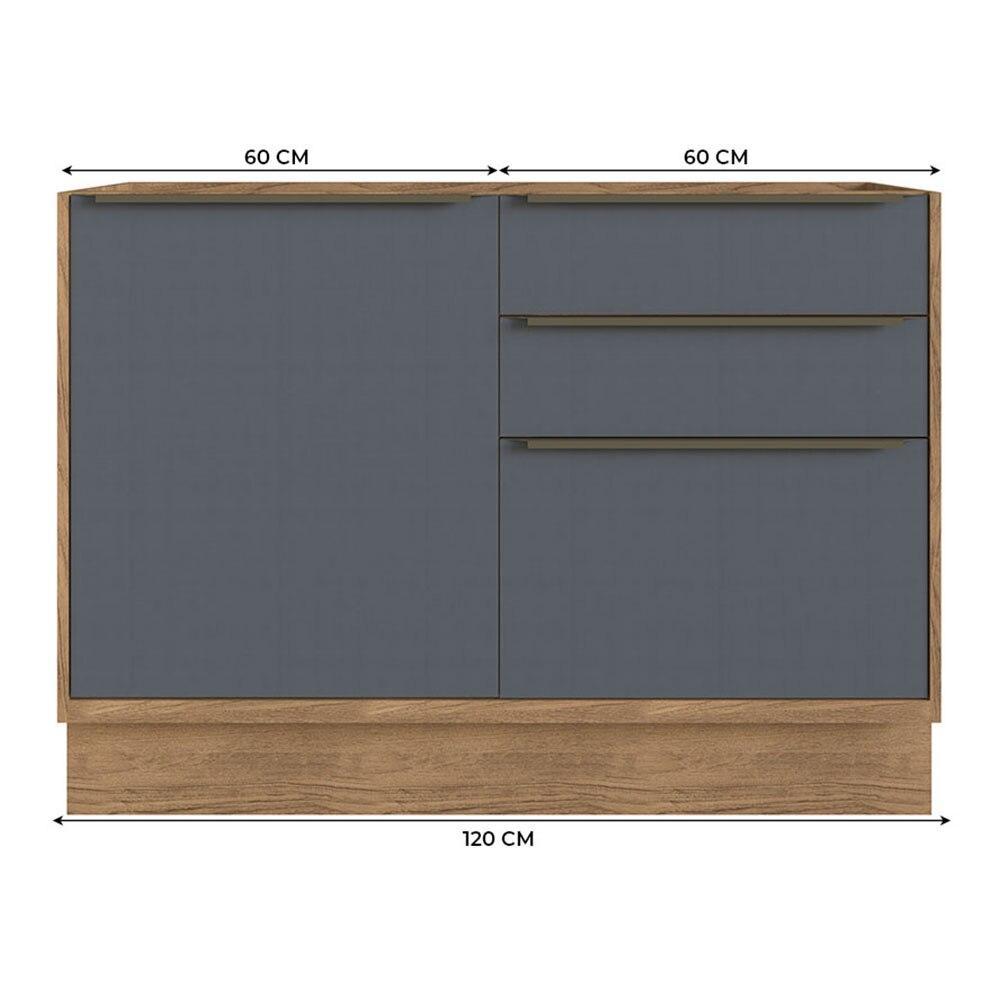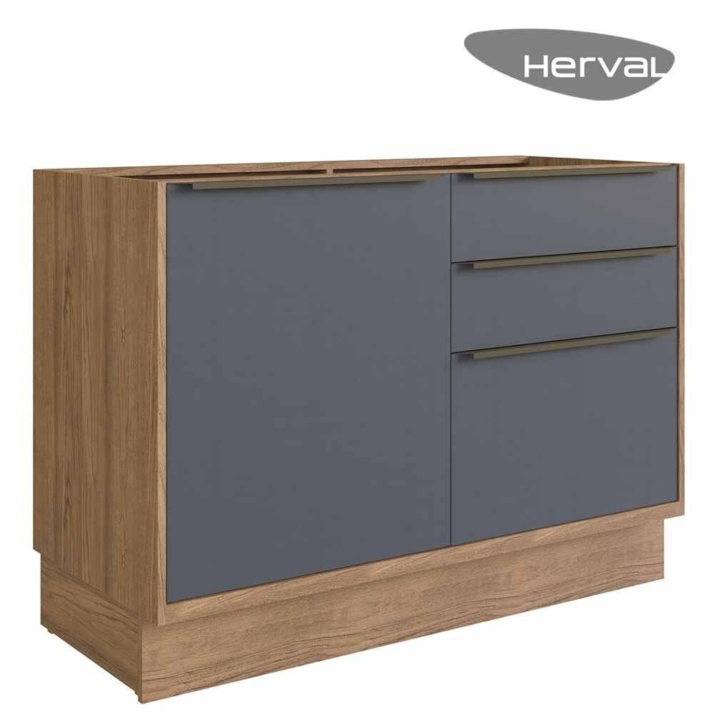 Balcão de Cozinha de Madeira MDF 100% Herval Ten, 1 Porta 3 Gavetas e 120 cm