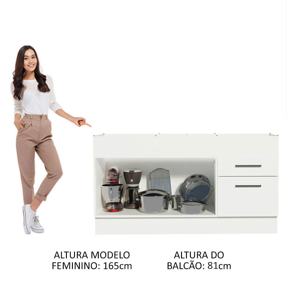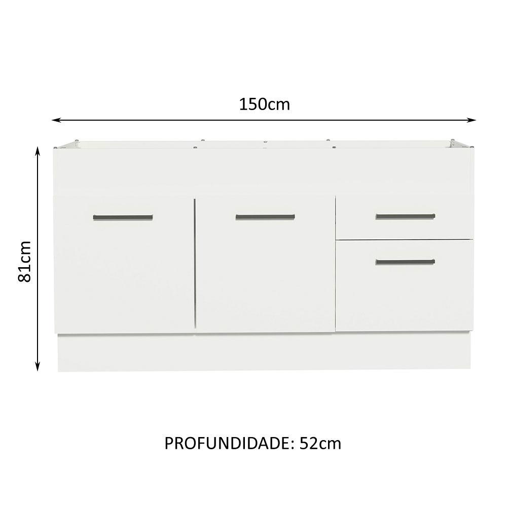 Balcão de Pia Cozinha 150 cm 2 Portas e 2 Gavetas (Sem Tampo e Pia) Branco Agata Madesa