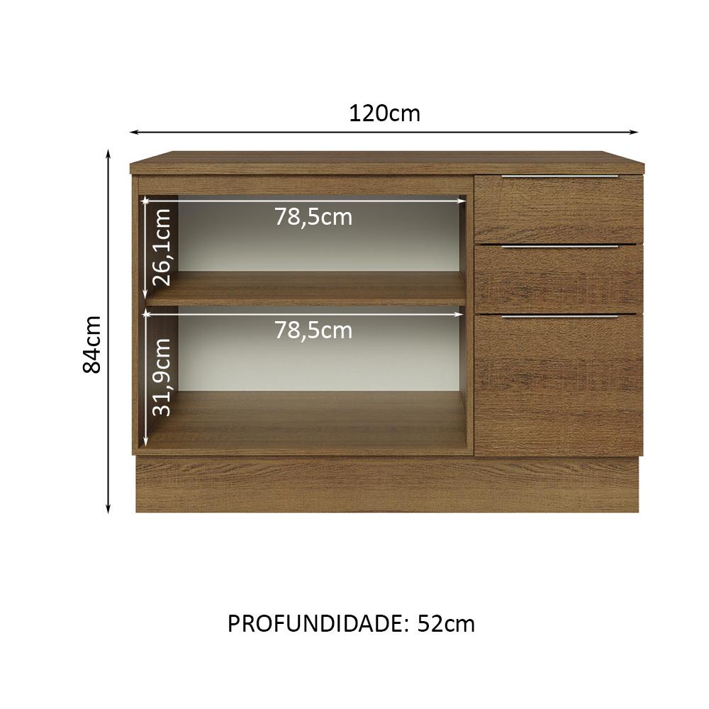 Balcão de Pia Cozinha 2 Portas e 3 Gavetas (Com Tampo) Rustic Stella Madesa