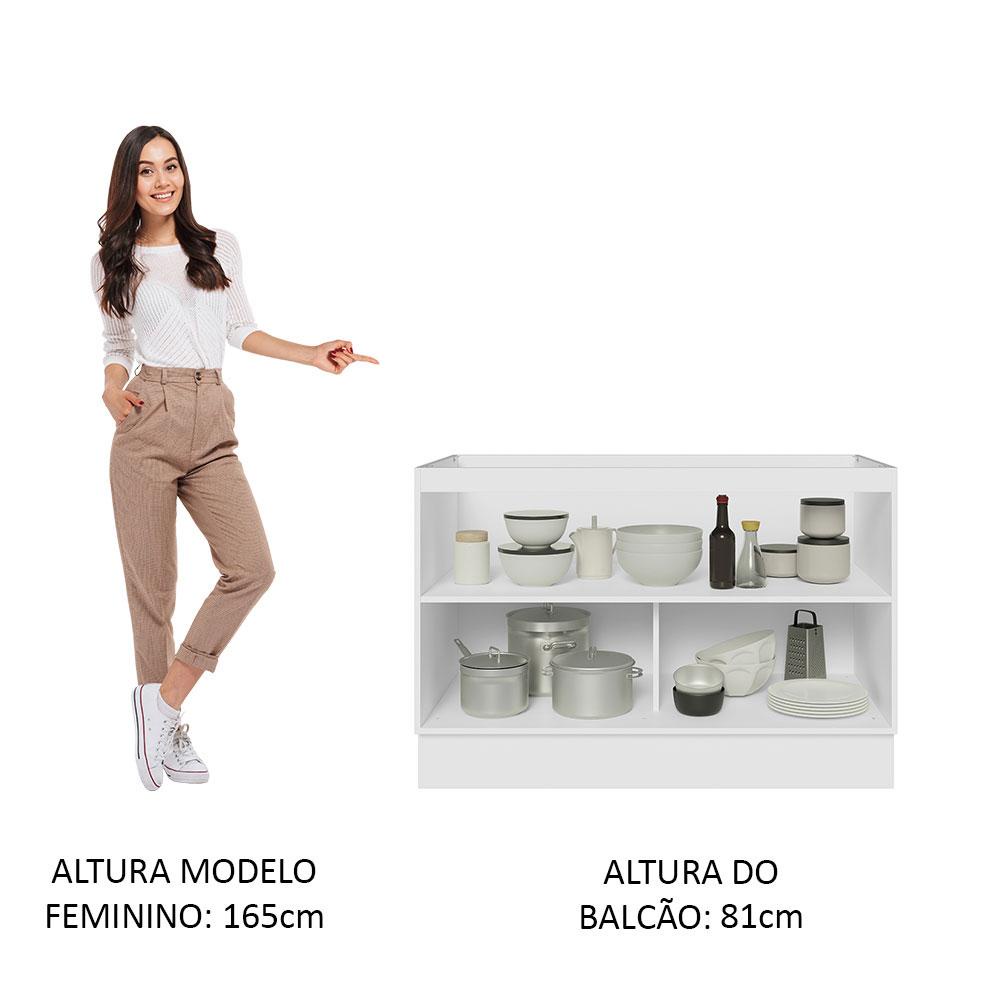 Balcão de Pia Madesa Lux 120 cm 2 Portas - Branco/Preto