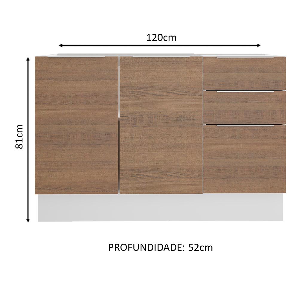 Balcão de Pia Madesa Stella 2 Portas e 3 Gavetas - Branco/Rustic