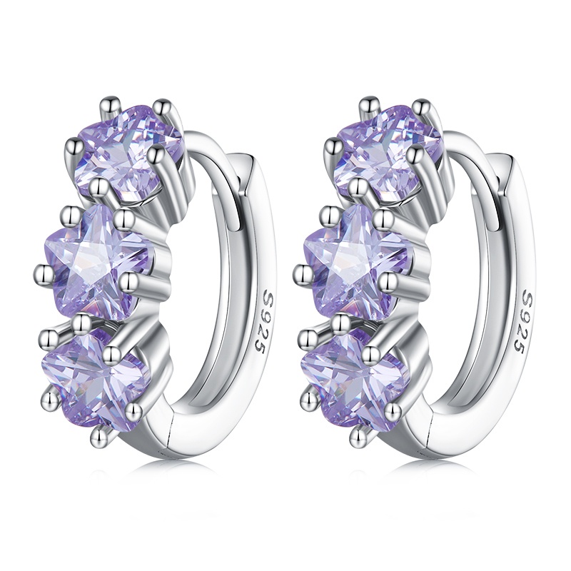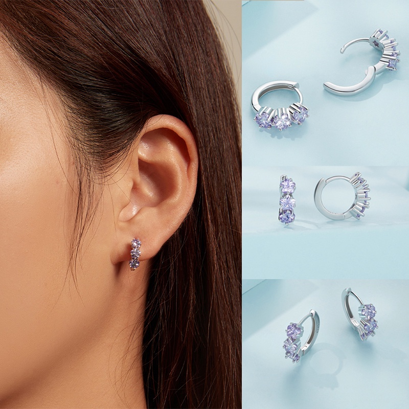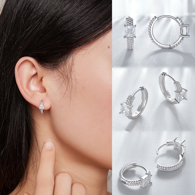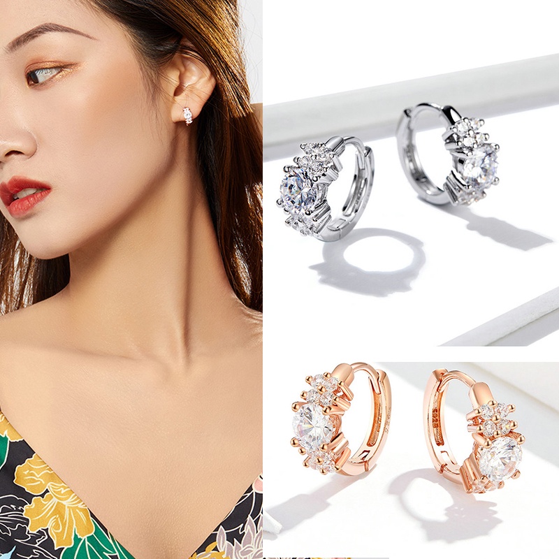 Bamoer (1 Par) 925 Prata Esterlina Brincos Simples Zircon De Aniversário Moda Para Mulheres
