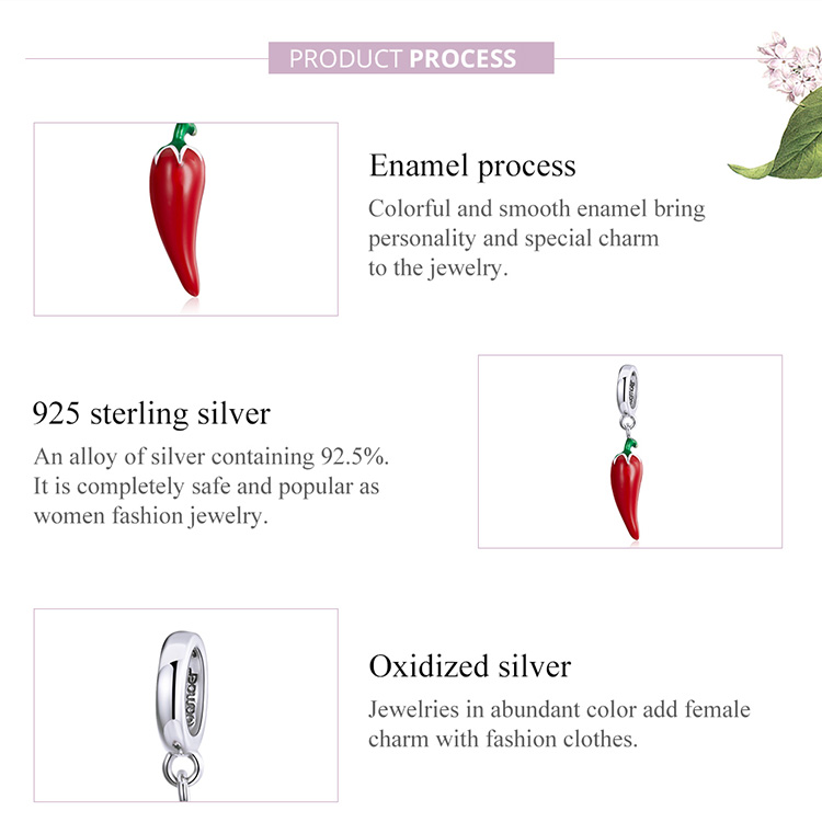 Bamoer 100% Prata 925 Pingente Petiete Pouco Pimenta Linda Estilo Fit Charme Pulseiras Jóias Fazendo Acessórios De Moda Bsc461