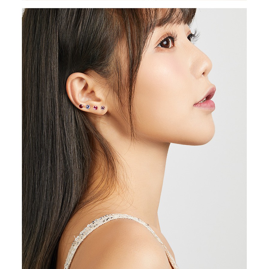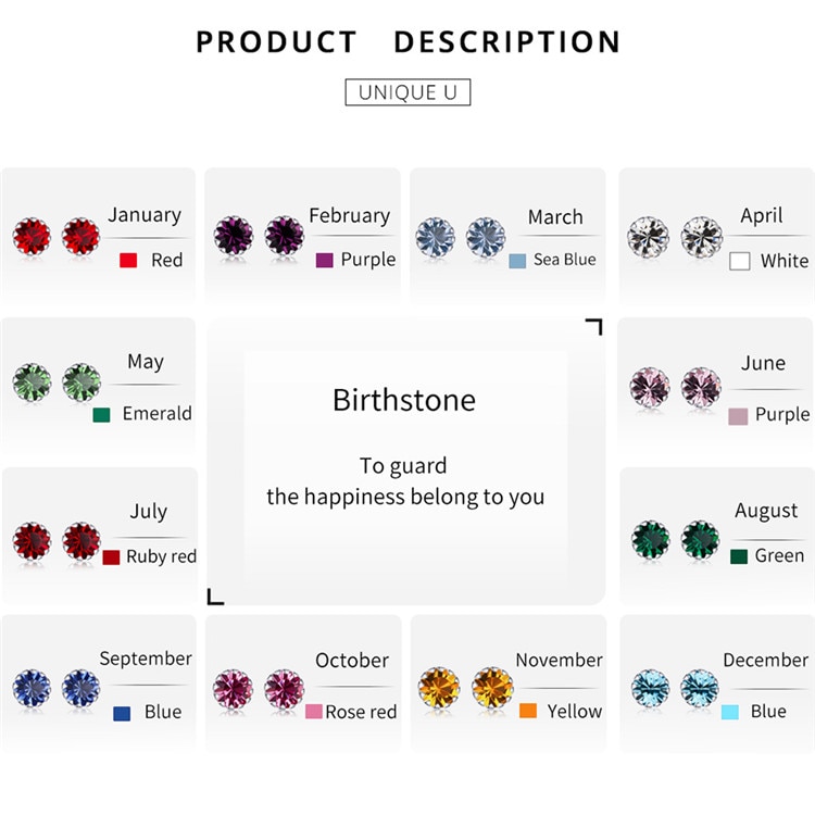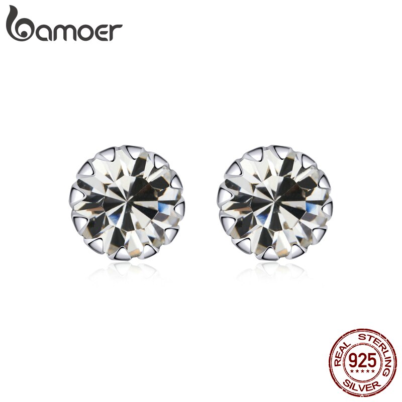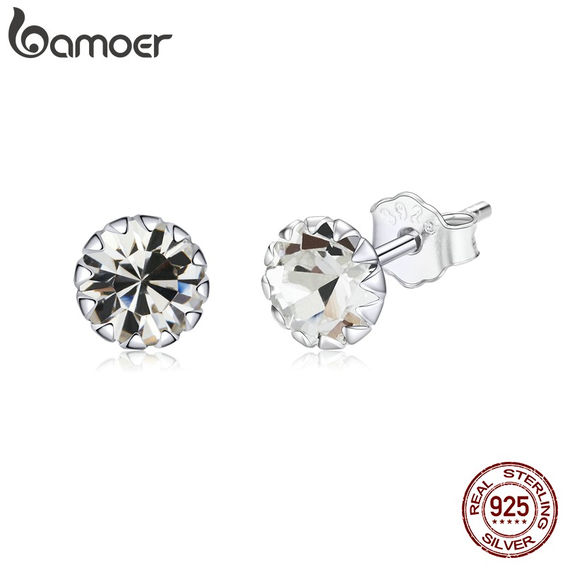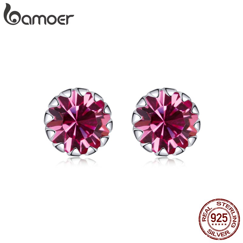Bamoer 100% Sterling Silver 925 Stud Earring Birth Stone AAA Cubic Zircon Jewelry SCE862