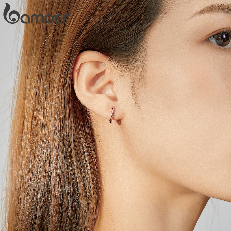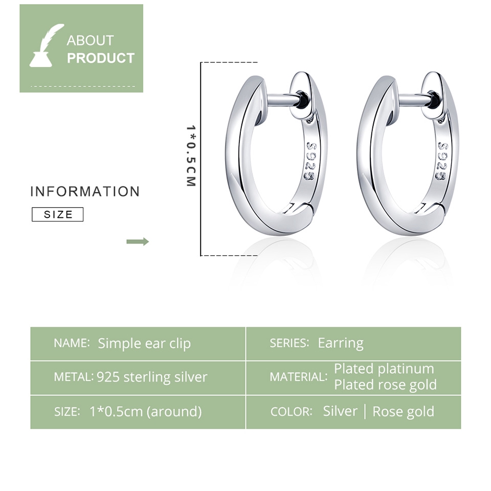 Bamoer 3 Cor Prata Ouro Rosa De Moda Brinco Para Feminino Simples Clipe Ouvido Authentic 925 SCE808