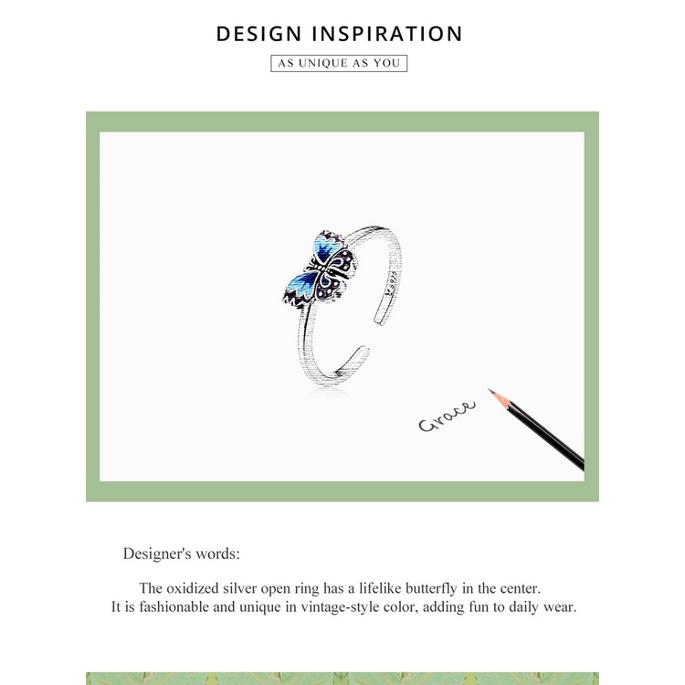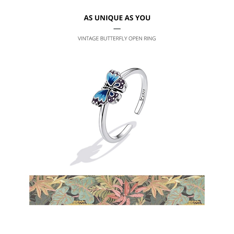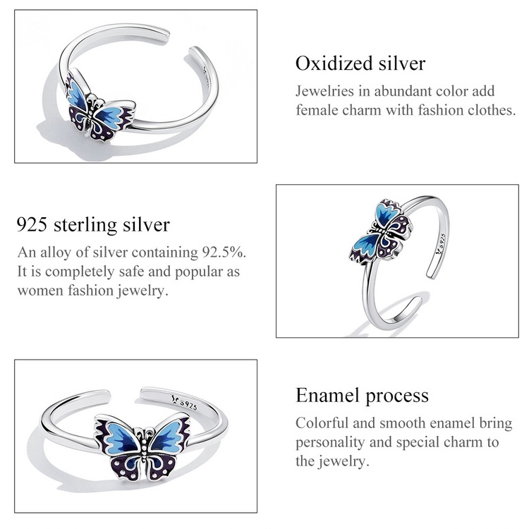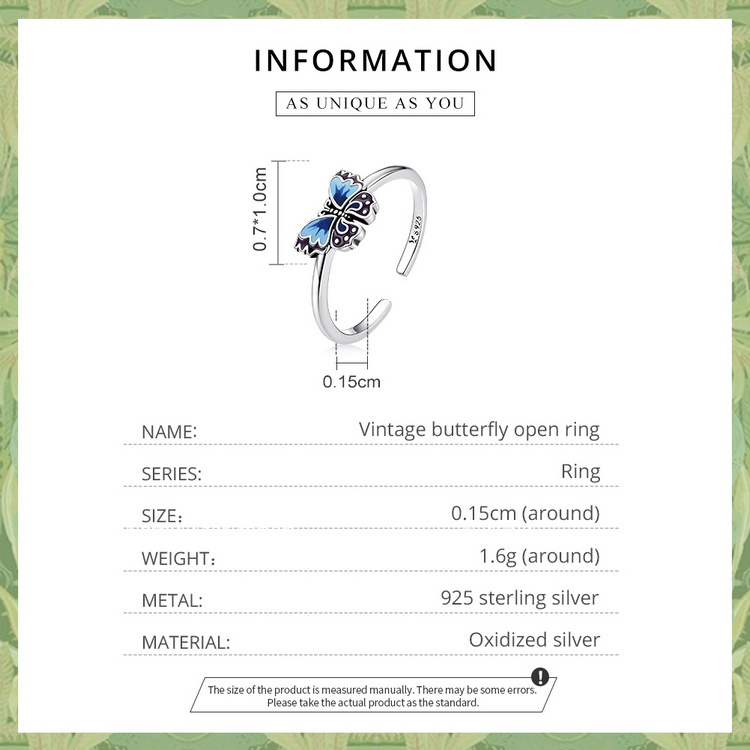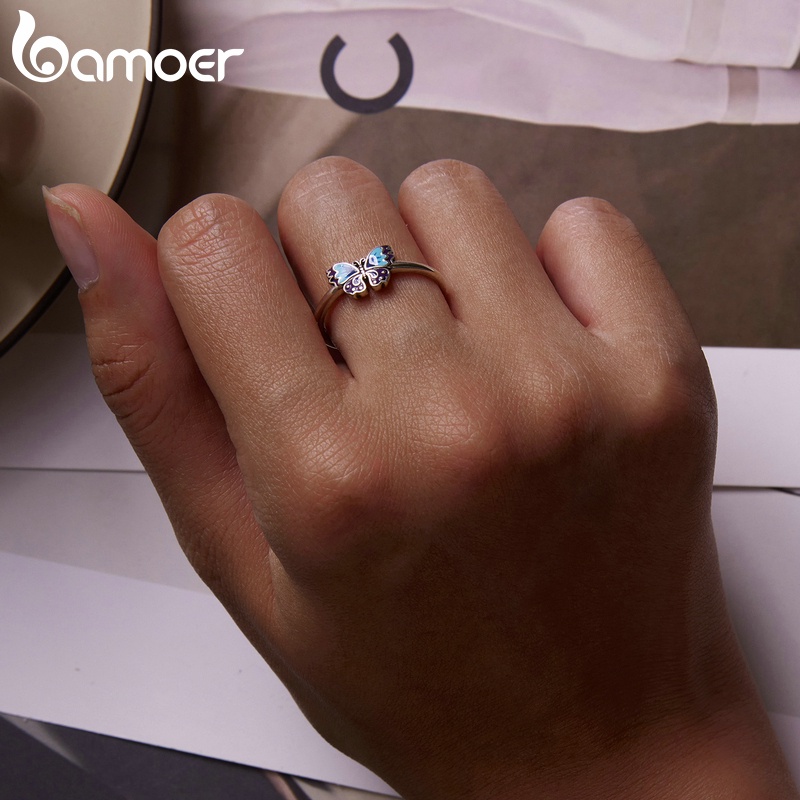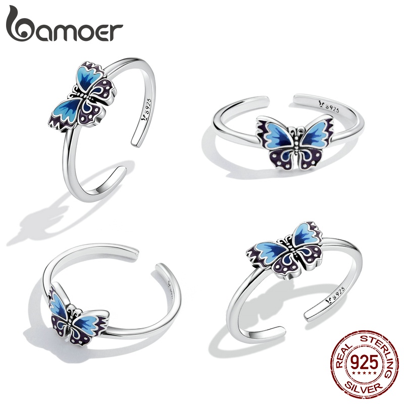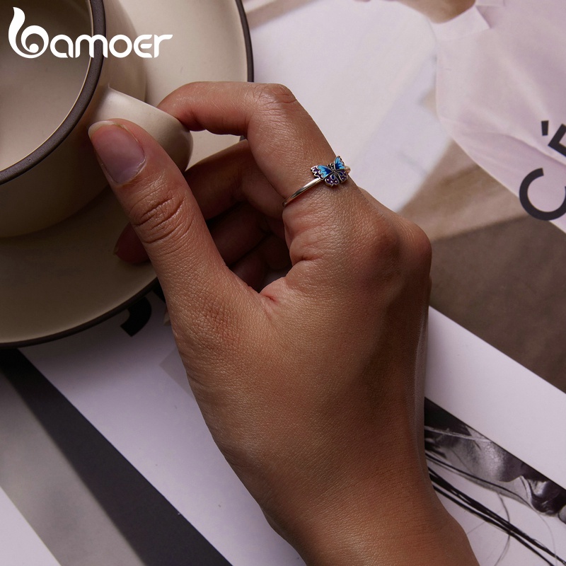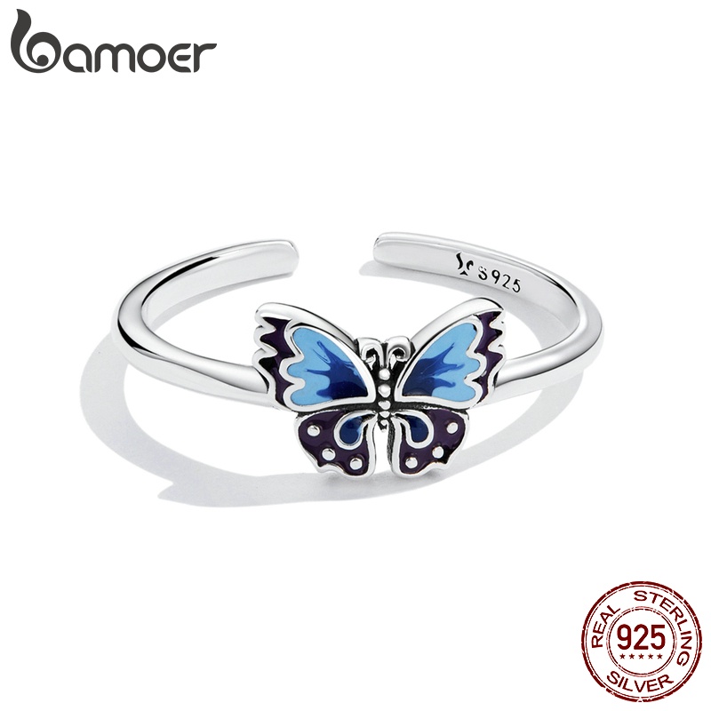 Bamoer 925 Anel Aberto De Prata Vintage Borboleta Tamanho Ajustável Para Mulheres Moda Jóias SCR802