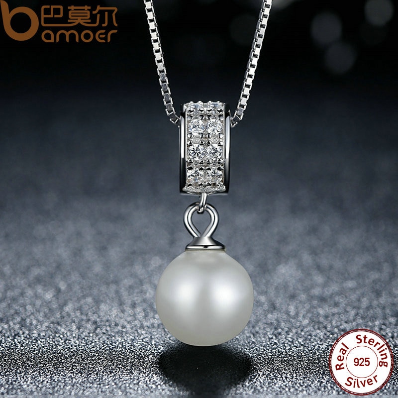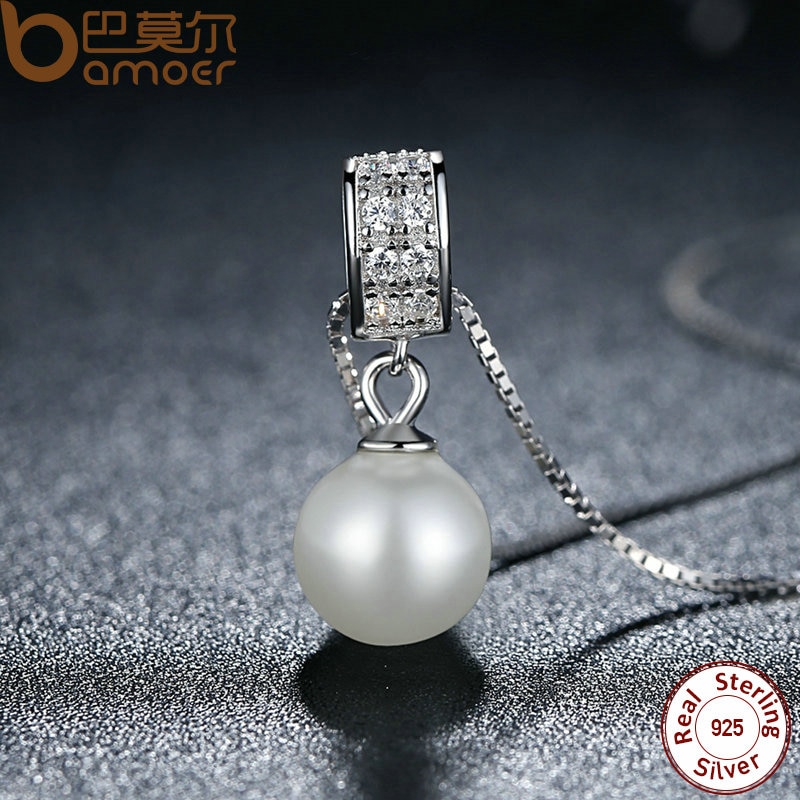 Bamoer 925 Colar De Corrente Longa Com Pingente De Pérola Artificial / Acessórios Scn030