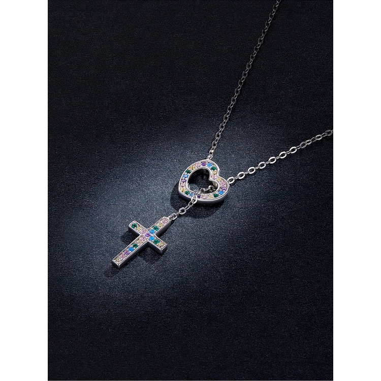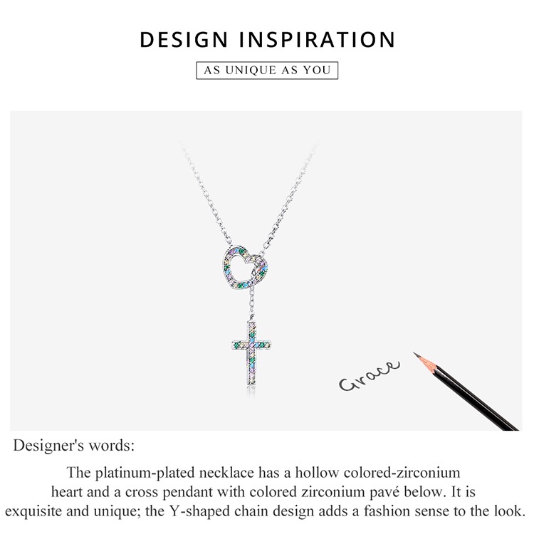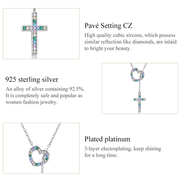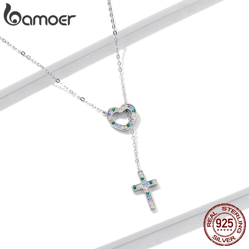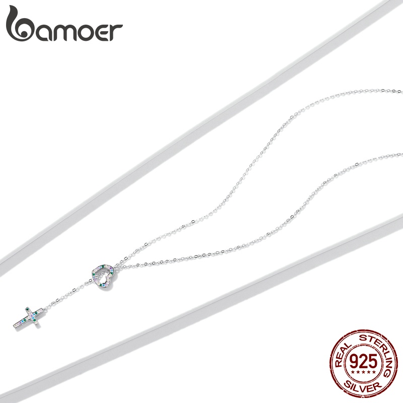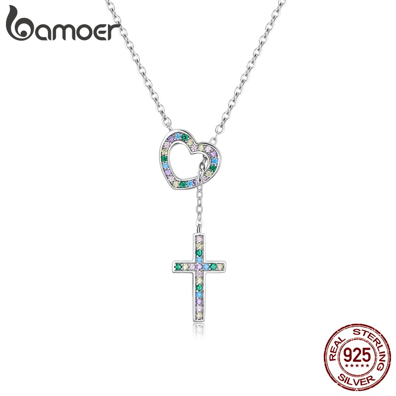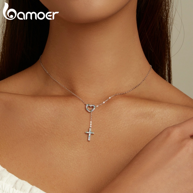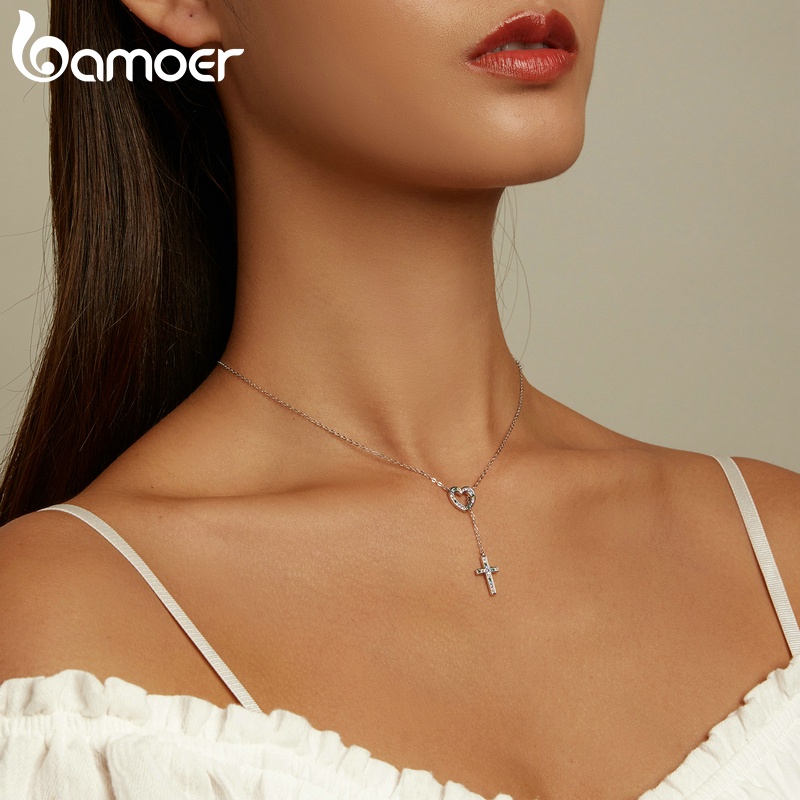 Bamoer 925 Colar De Prata Cadeia Ajustável 42.5 Cm Comprimento Amor Cruz Pingente Moda Jóias Presentes Para Mulheres BSN244
