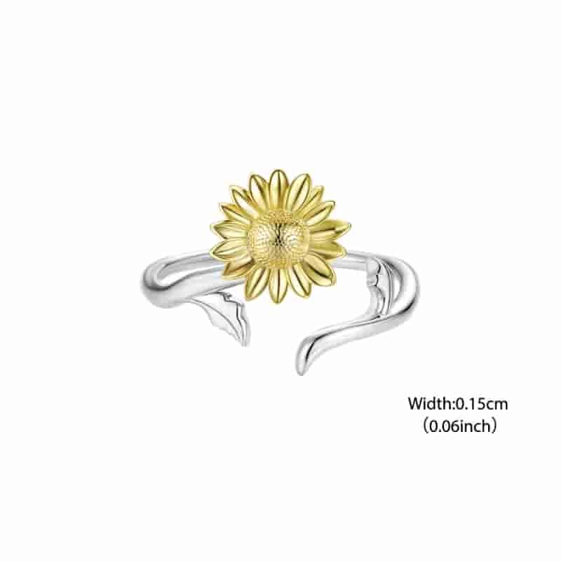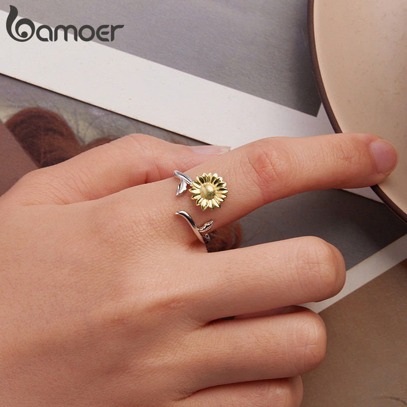 Bamoer 925 Original Prata Esterlina Anel Ajustável Ouro Girassol Jóias Presente Para Mulher