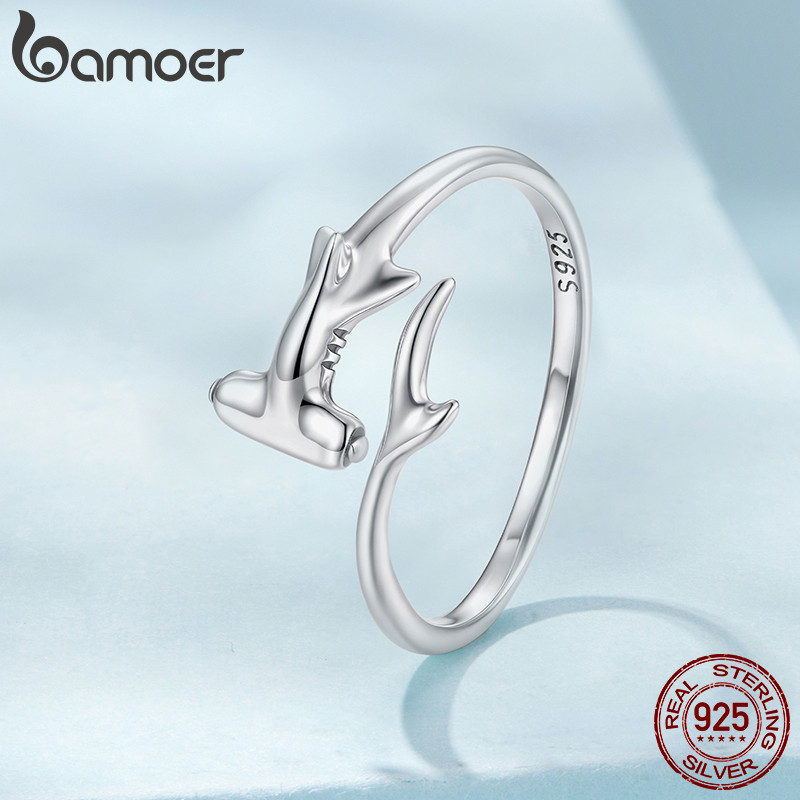 Bamoer 925 Prata Esterlina Anel Aberto Tamanho Ajustável Tubarão Martelo Moda Jóias Presentes Para Mulher