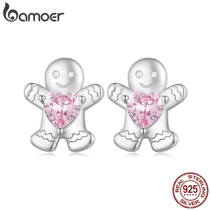 Bamoer 925 Prata Esterlina Brincos Presentes De Natal Homem Gengibre Colorido Estrela Orelha Studs Moda Jóias Para Mulhe