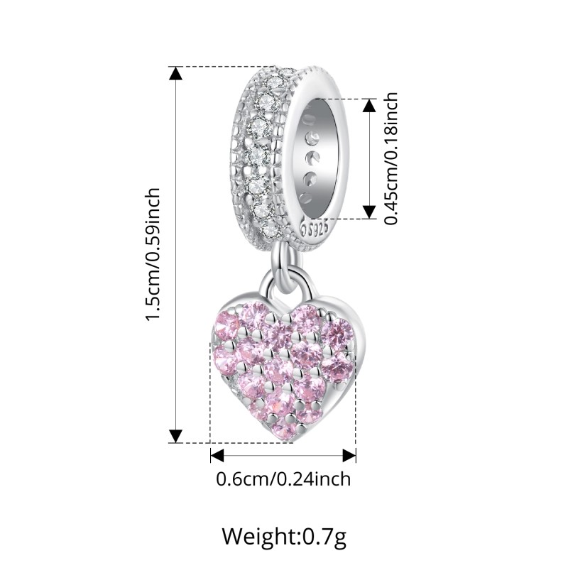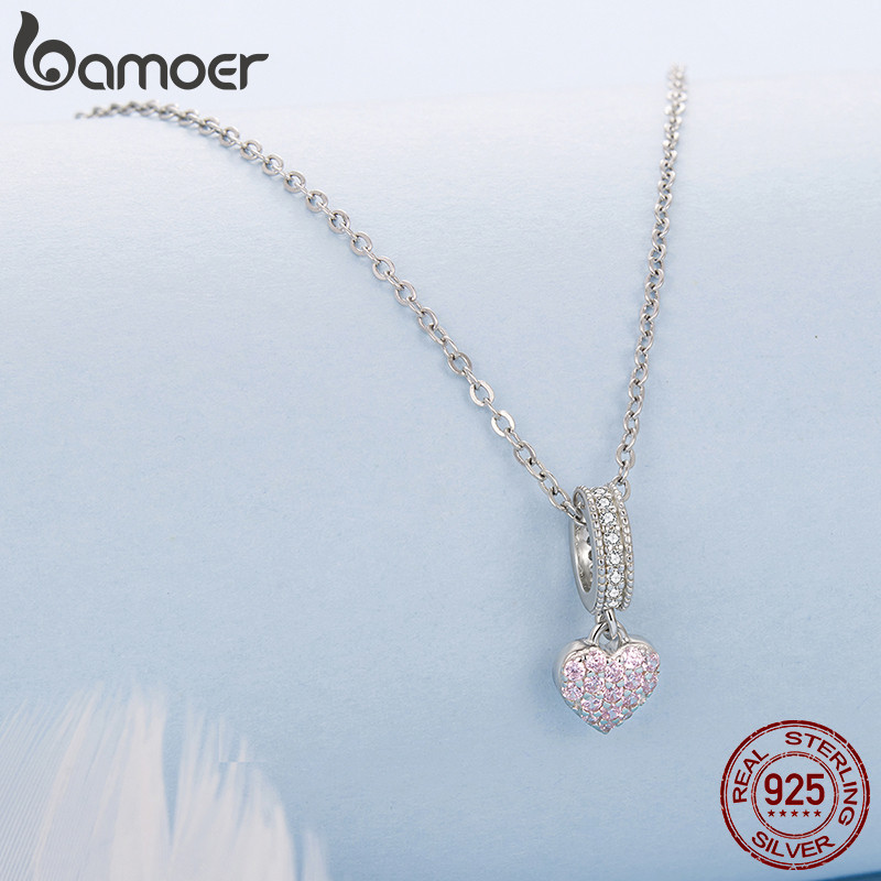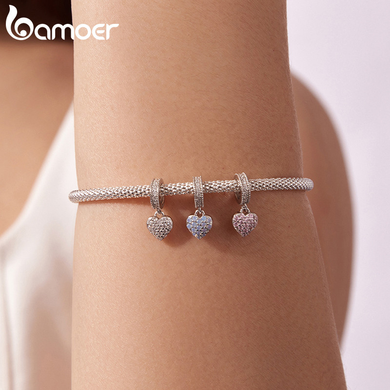 Bamoer 925 Prata Esterlina Charme Coração Pingente DIY Para Pulseira Presentes Mulheres