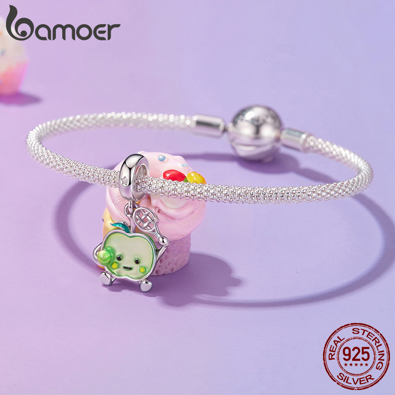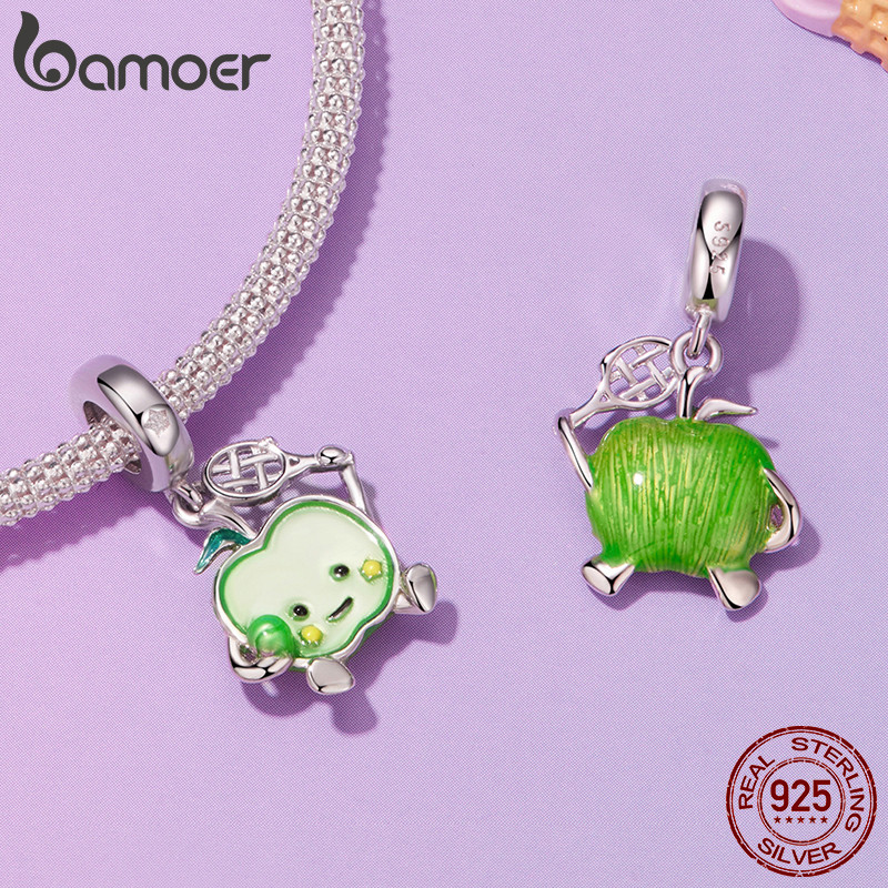 Bamoer 925 Prata Esterlina Charme Verde Maçã Pingente DIY Para Pulseira Presentes Mulheres
