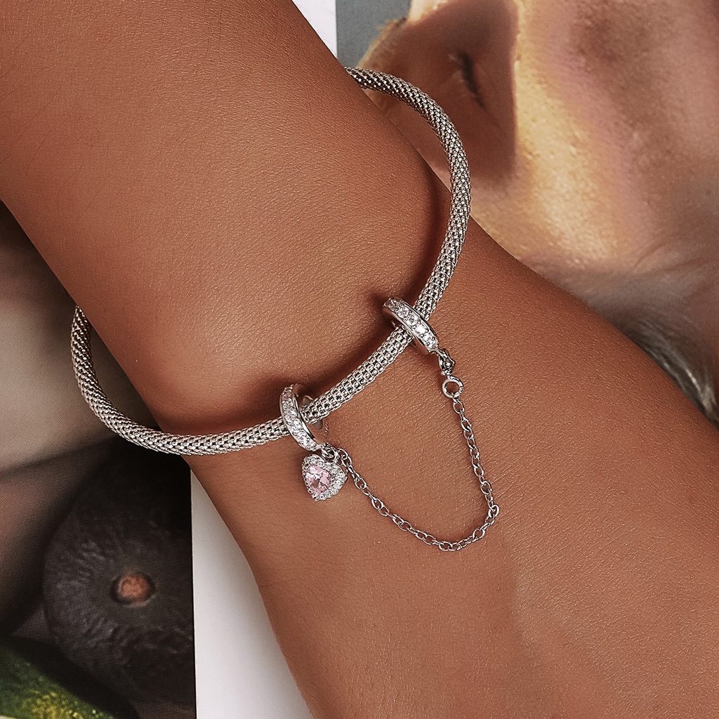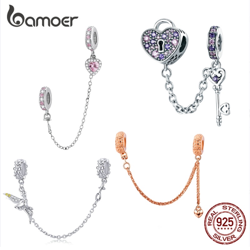 Bamoer 925 Prata Esterlina Corrente De Segurança Coração Eterno Jóias Pulseira Encantos Versátil Presente Casal