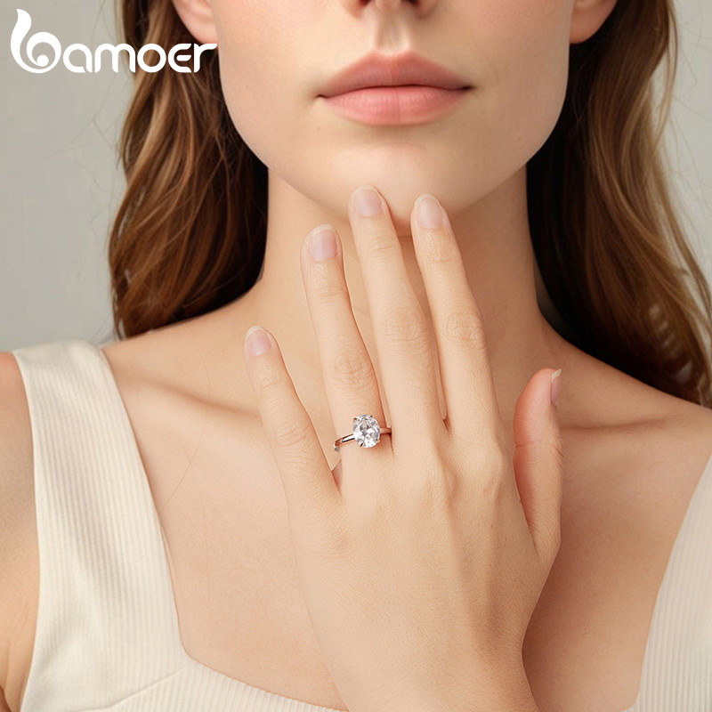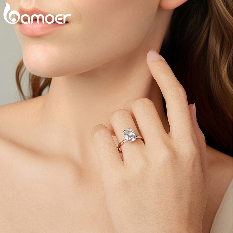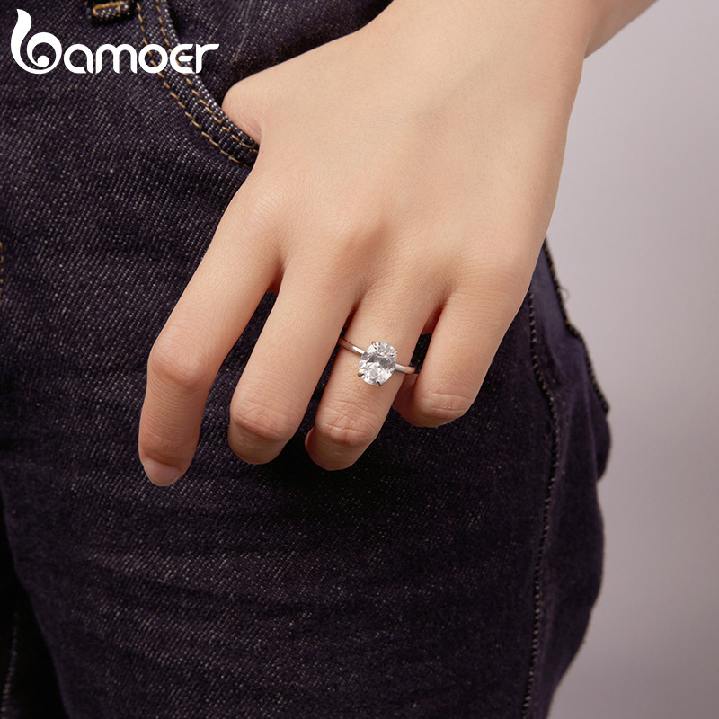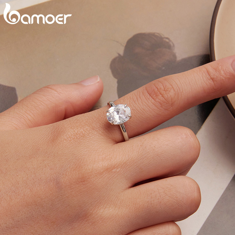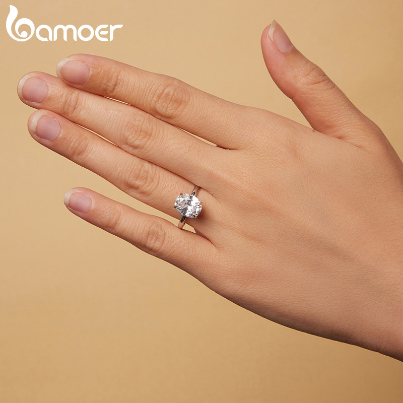Bamoer 925 Prata Esterlina Original 3.5 Quilates Anel De Casamento Corte Oval Joia Presente Para Mulheres