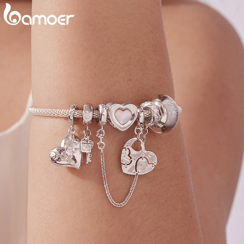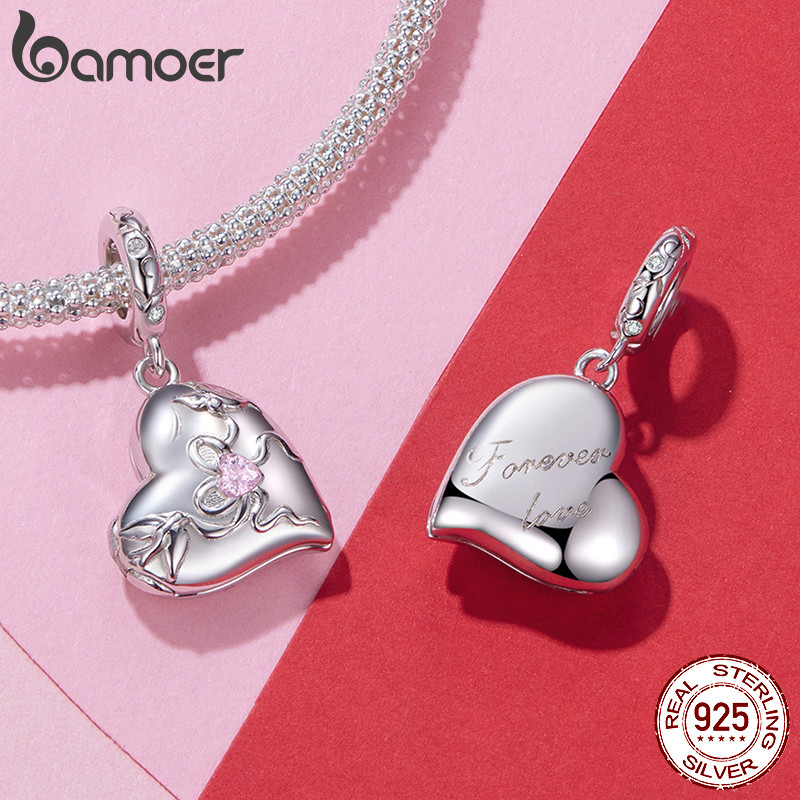 Bamoer 925 Prata Esterlina Pingente Amor Série Rosa Pássaro Aberto Coração Nó Diy Pulseira Jóias Presente Feminino
