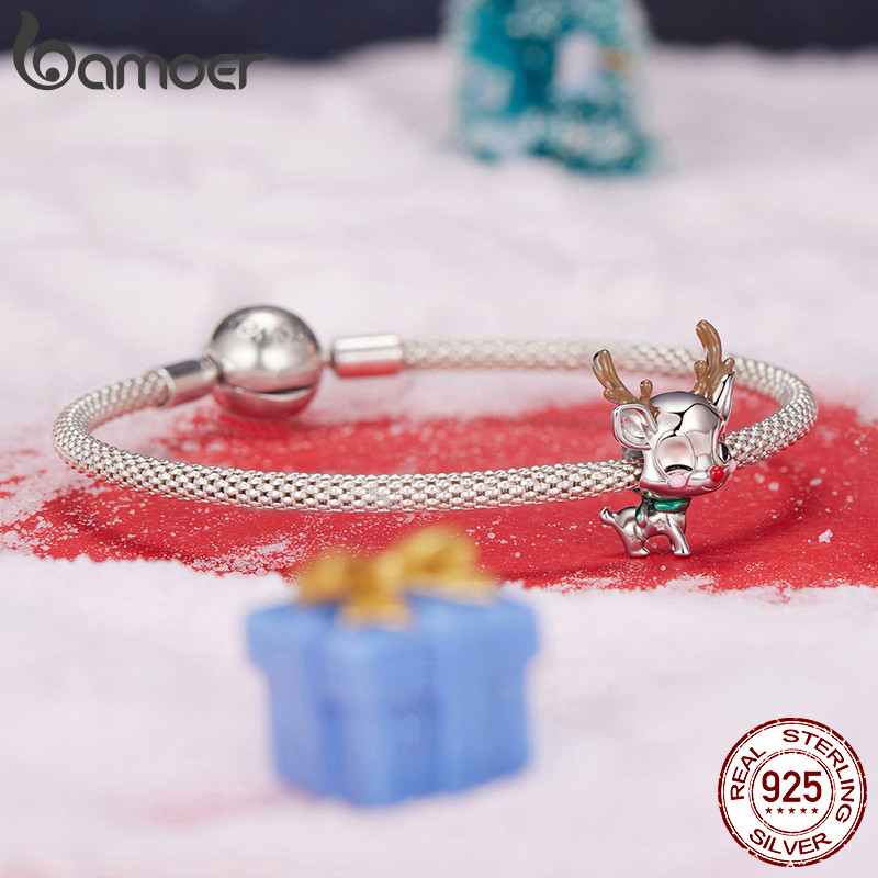 Bamoer 925 Prata Esterlina Pingente Série De Natal Elk Acessórios Pulseira Jóias Presente Feminino