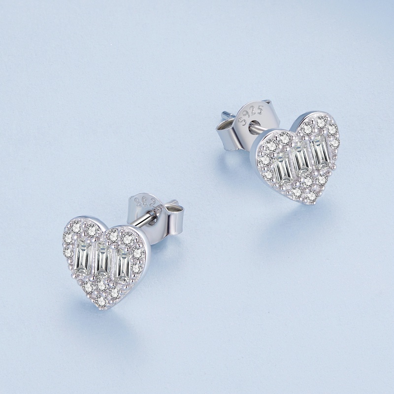 Bamoer 925 Prata Simples Brincos Em Forma De Coração Moda Joalheria Para Mulheres