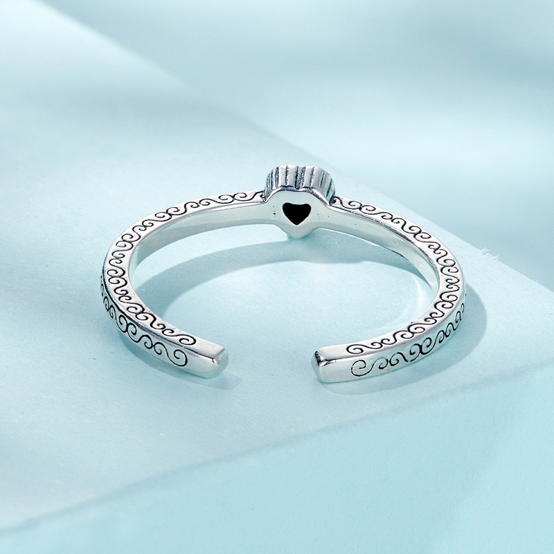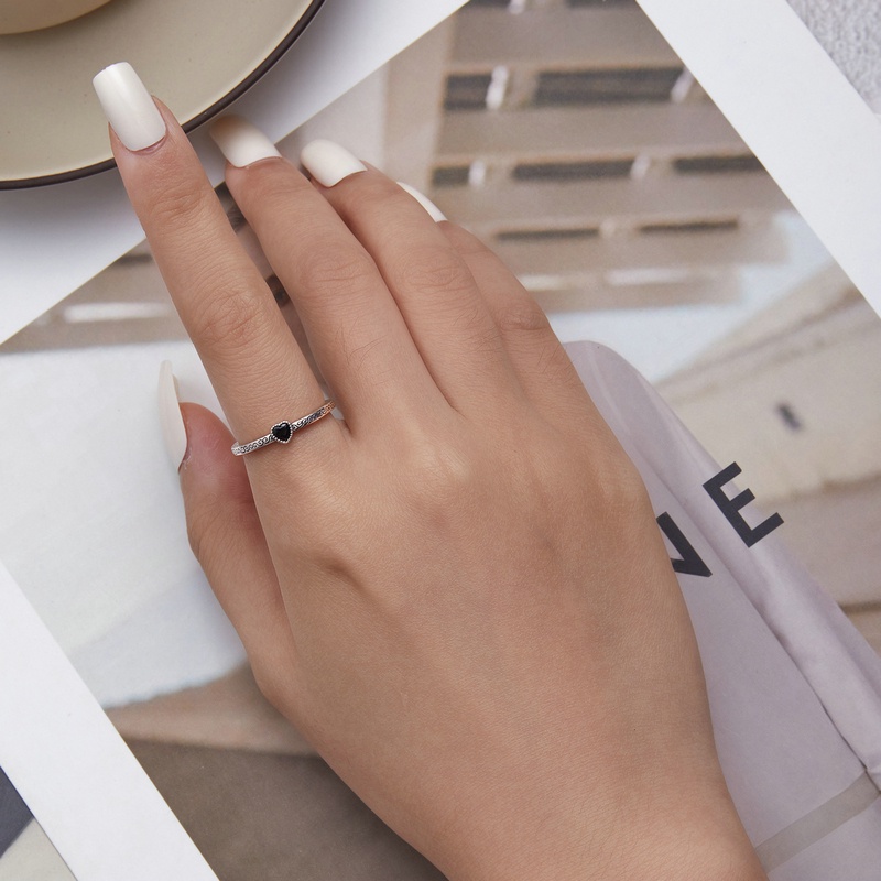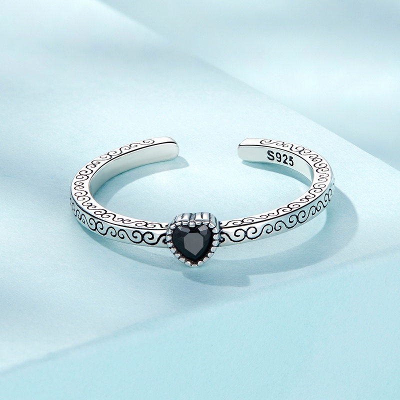 Bamoer 925 Prata Vintage Preto Zircônia Retrô Anel Moda Joalheria Presente Para Meninas