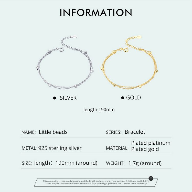 Bamoer 925 Pulseira Cadeia Mulheres Rodada Beads Double Layers Chain Link Pulseiras Feminino Jóias De Prata Esterlina 2019 Scb131