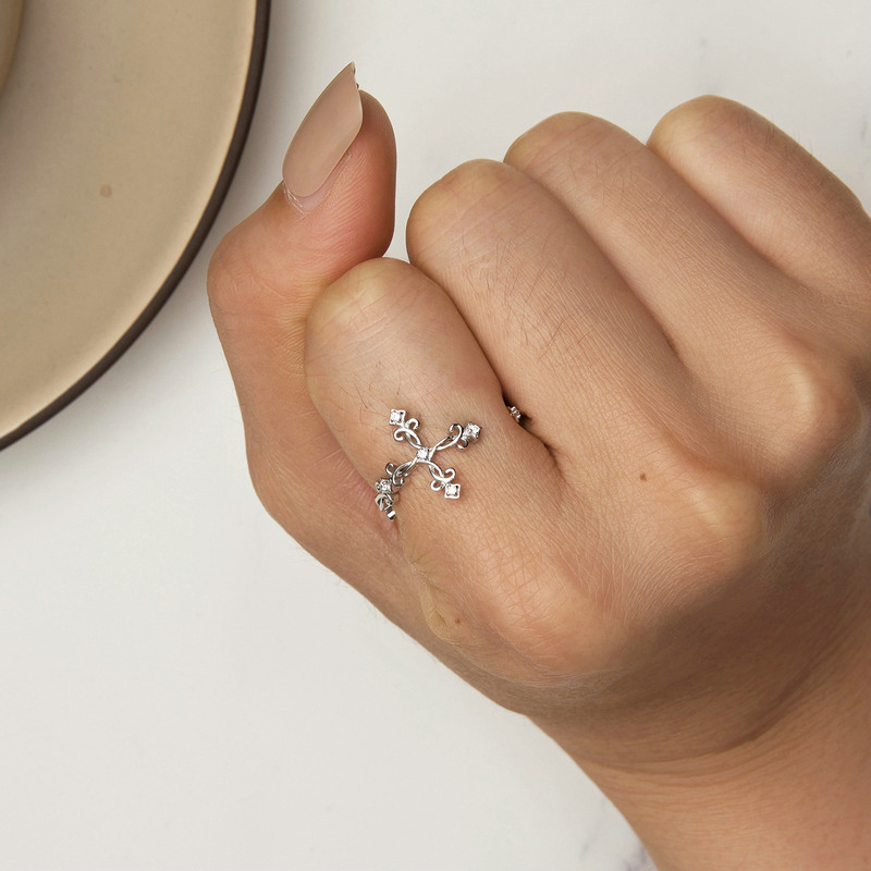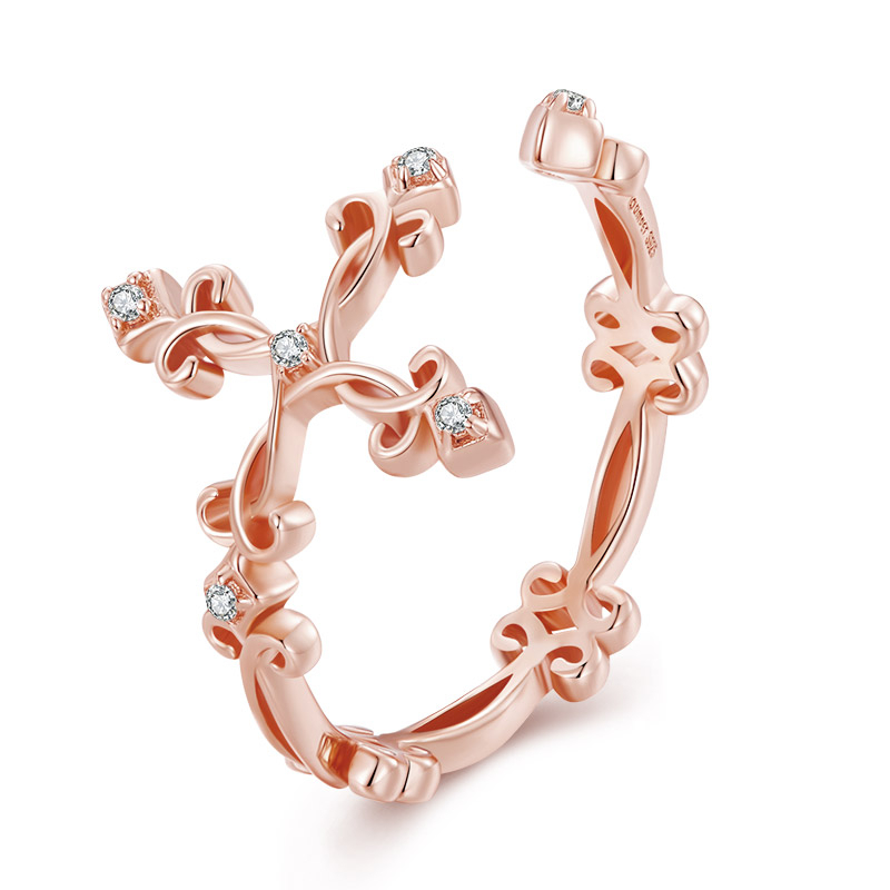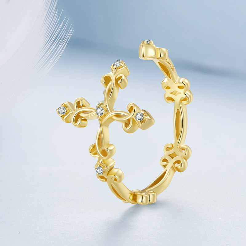Bamoer 925 Real Silver Retro Pattern Cross Anel De Dedo Ajustável Para Mulheres Anéis De Flor Vintage BSR041