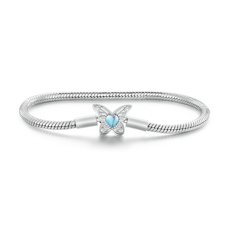 Bamoer 925 Silver Moonstone Butterfly Pulseira Básica 3 Tipos Disponíveis Presentes De Moda De Jóias
